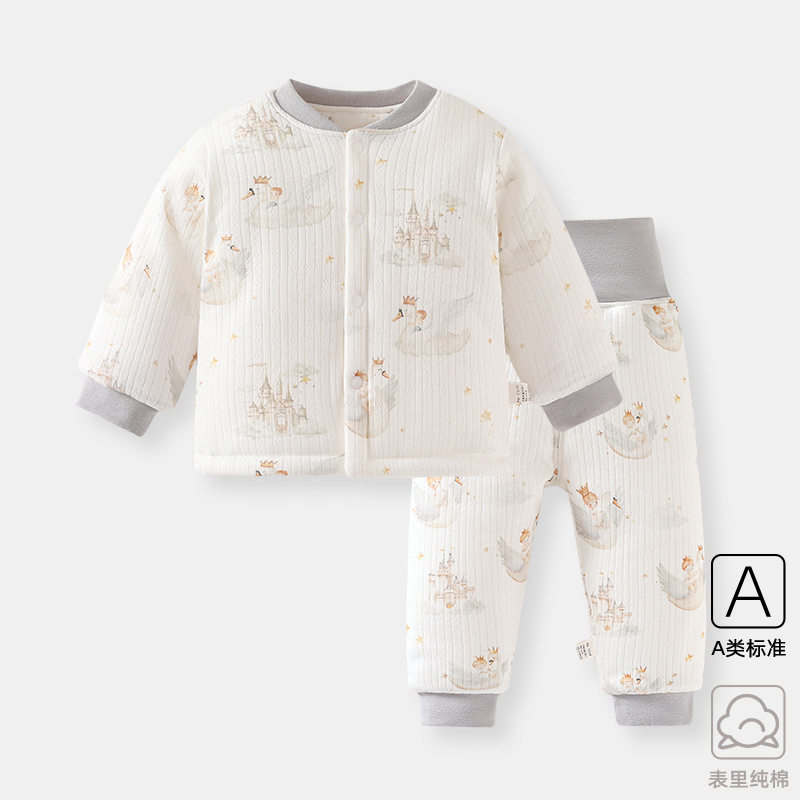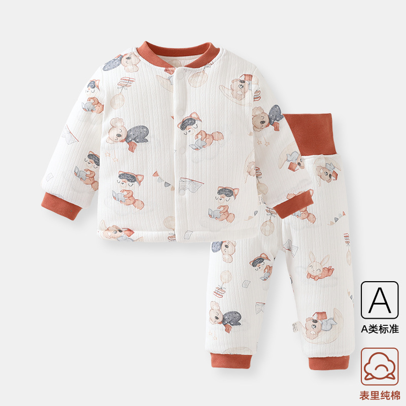 아기용 A급 유아용 보온 내의 두꺼운 면 하이웨이스트 배 보호 가을 바지 분리형 세트 보온형