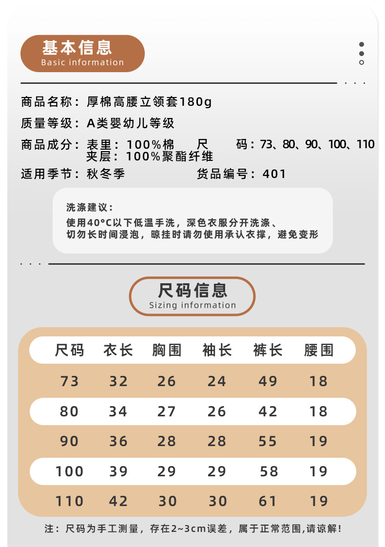 아기용 A급 유아용 보온 내의 두꺼운 면 하이웨이스트 배 보호 가을 바지 분리형 세트 보온형스토어 가기