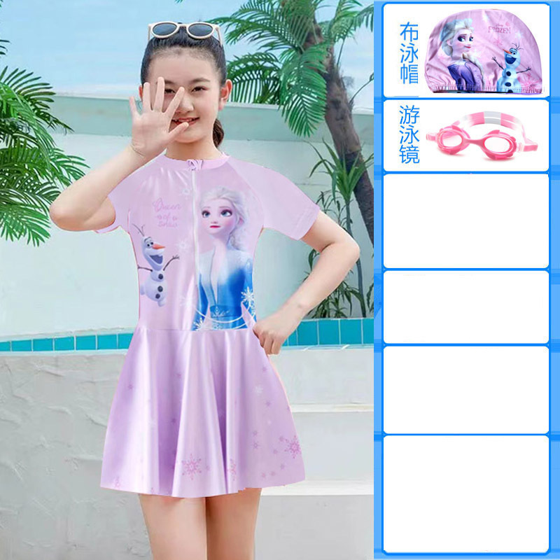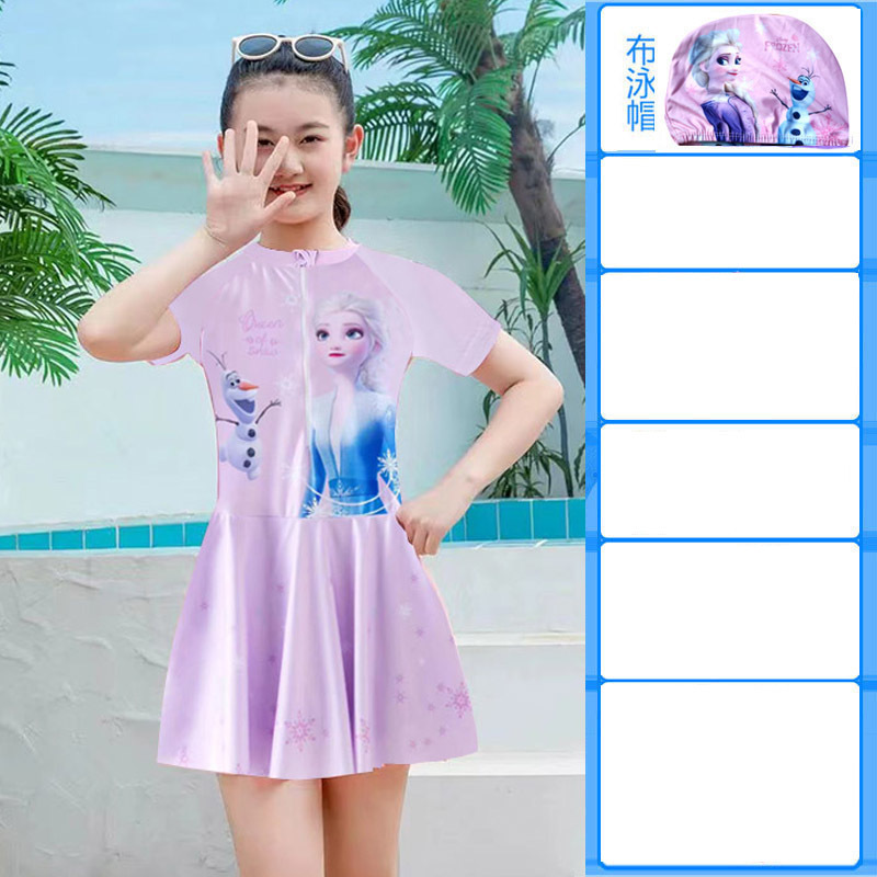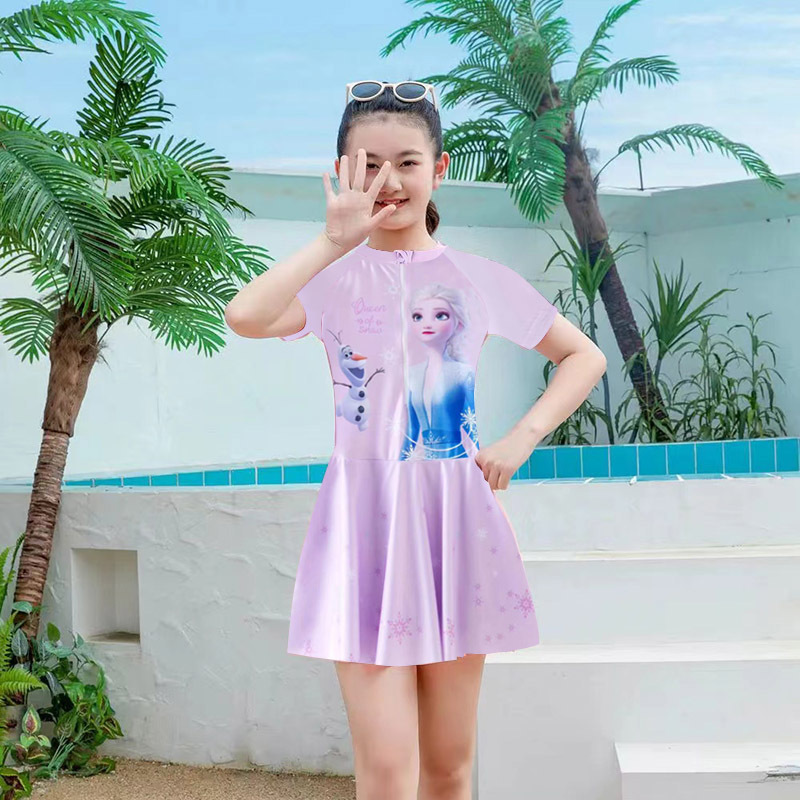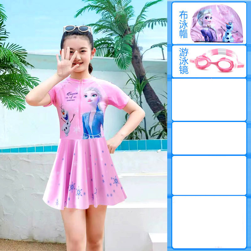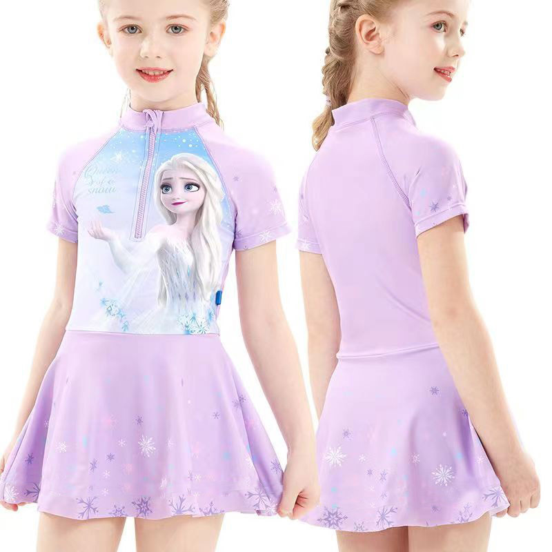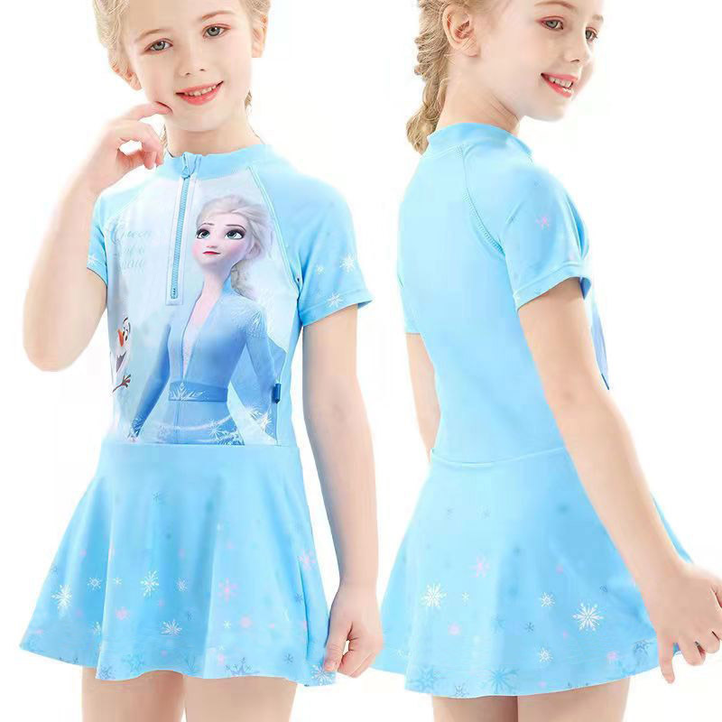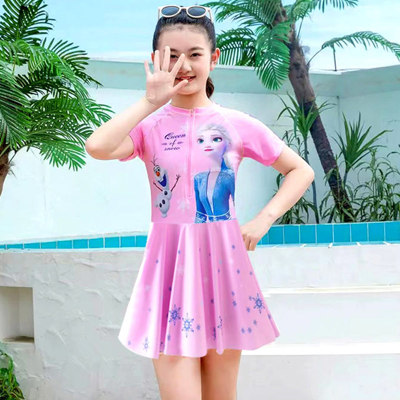 새로운 어린이 수영복 소녀 속건성 원피스 중대형 어린이 학생 스커트 스타일 겨울왕국 엘사 공주 수영복