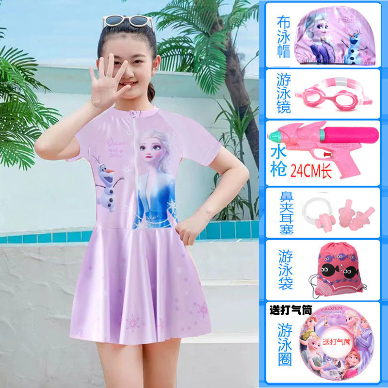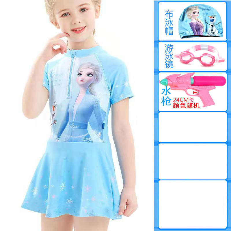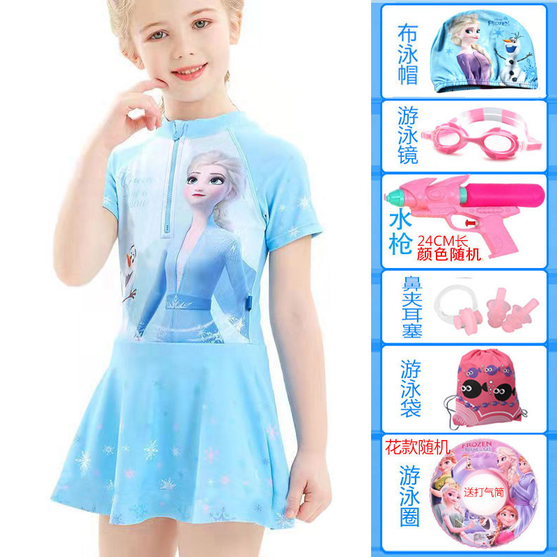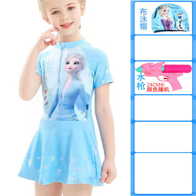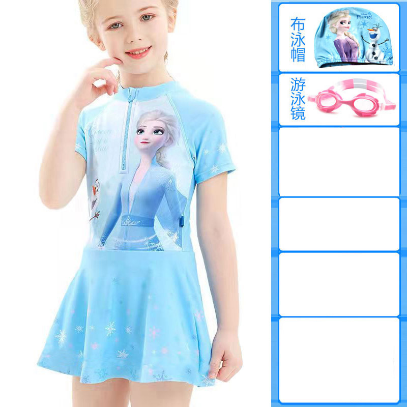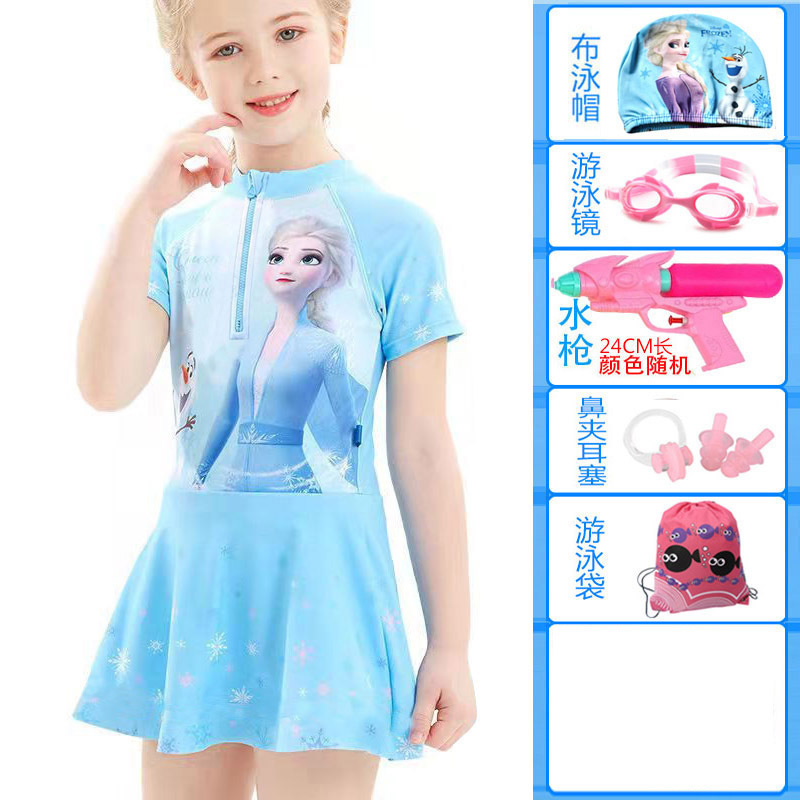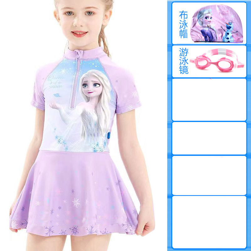 새로운 어린이 수영복 소녀 속건성 원피스 중대형 어린이 학생 스커트 스타일 겨울왕국 엘사 공주 수영복