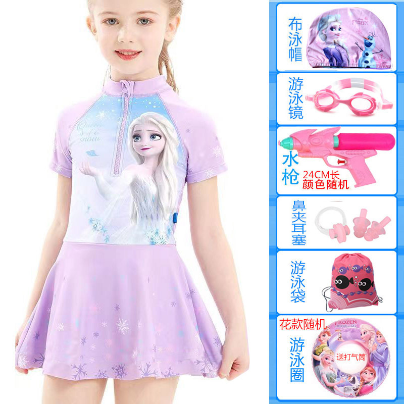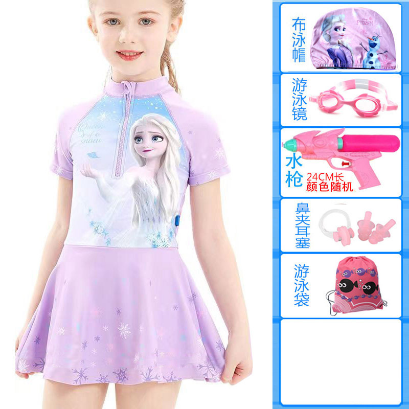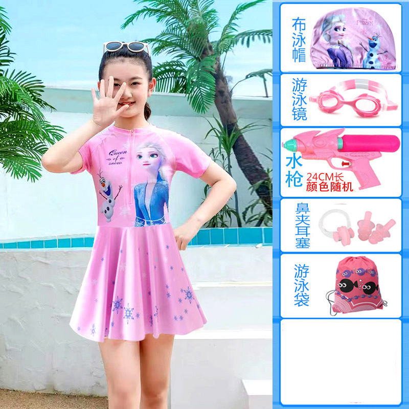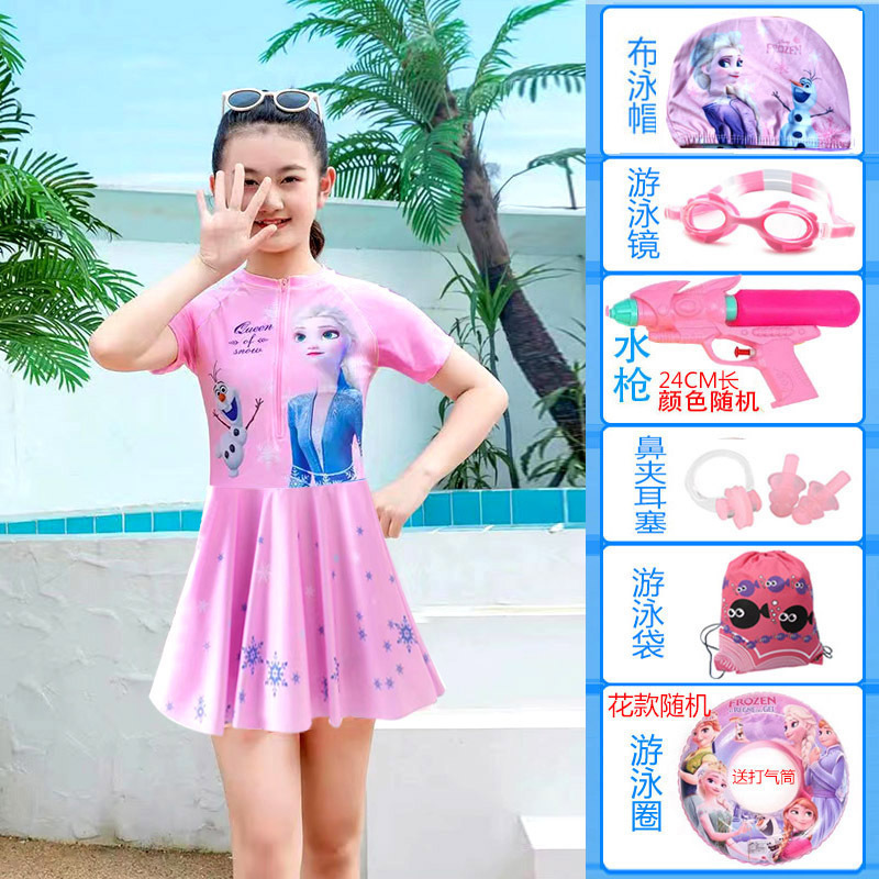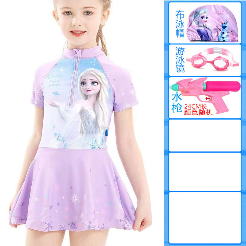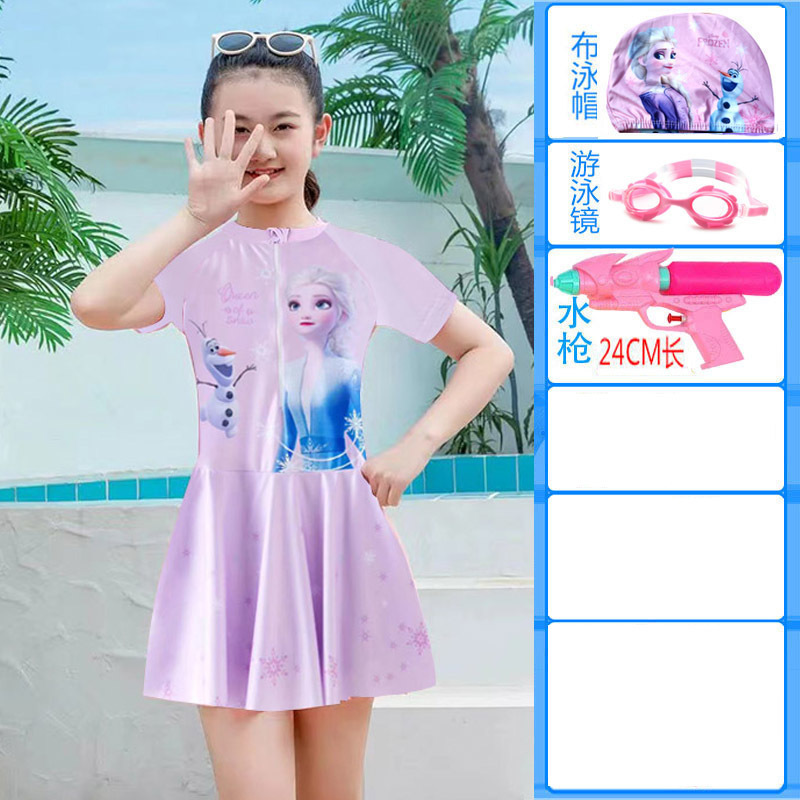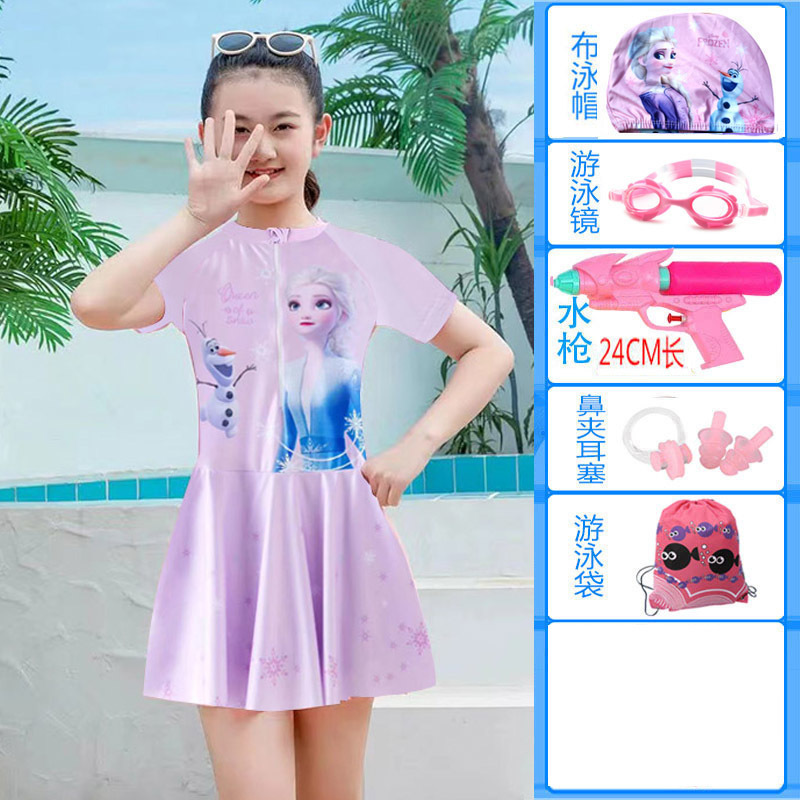 새로운 어린이 수영복 소녀 속건성 원피스 중대형 어린이 학생 스커트 스타일 겨울왕국 엘사 공주 수영복