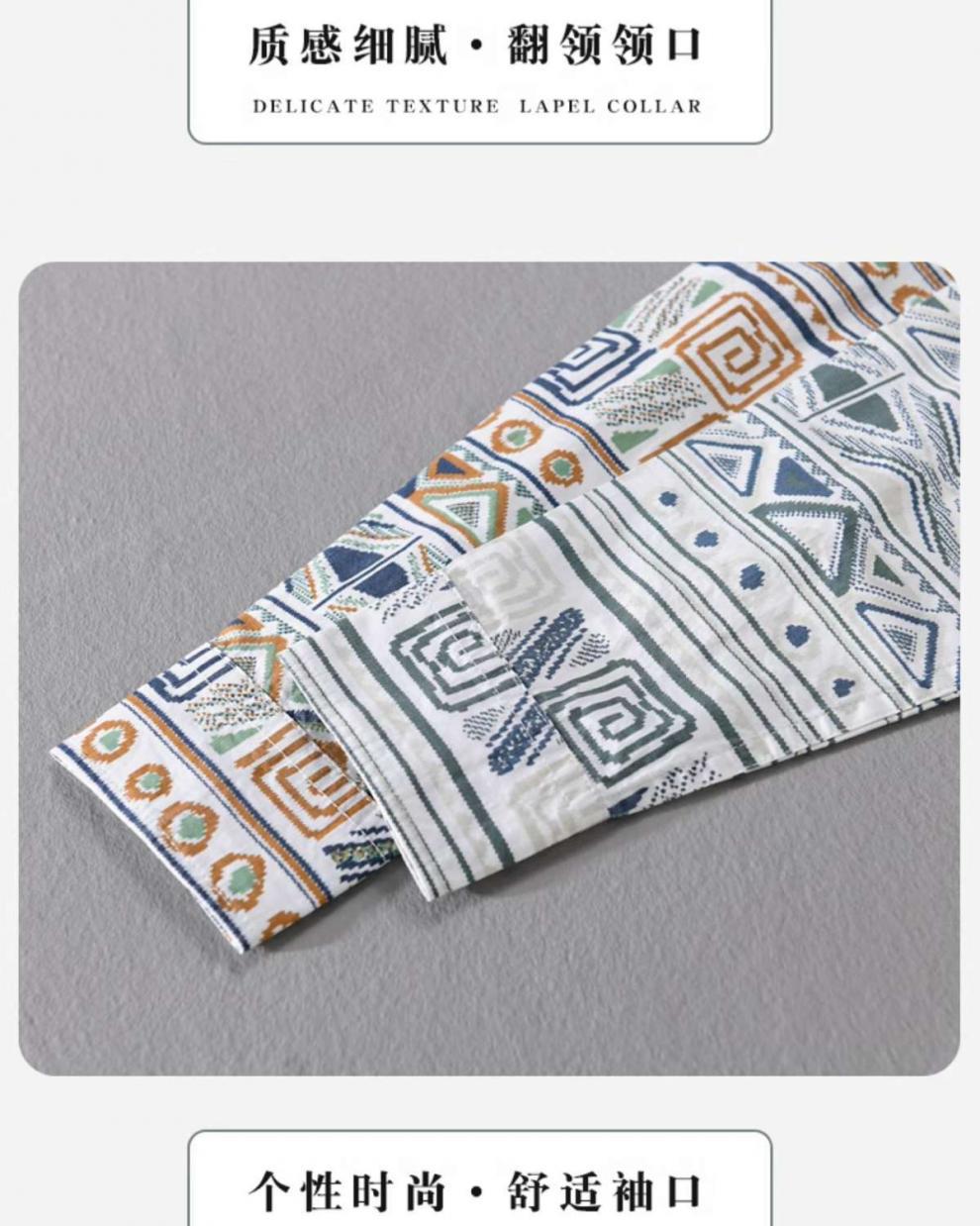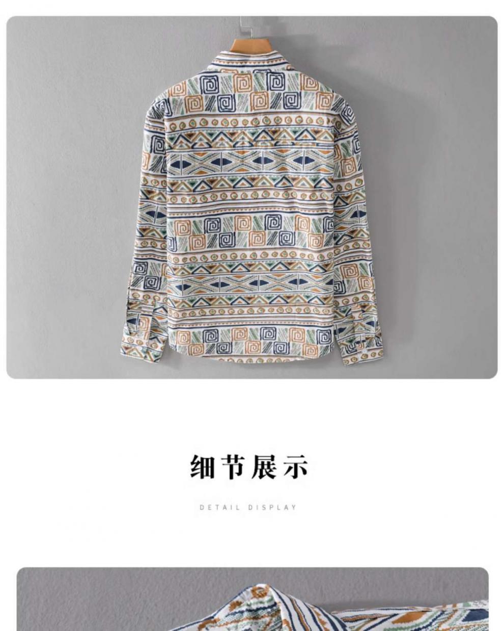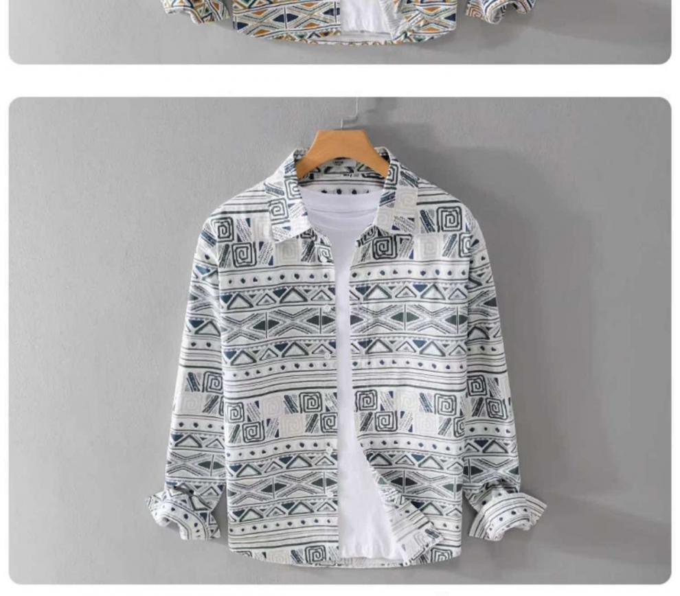 W9Q 고급 감각 미국 민족 스타일 전체 인쇄 남성 긴 소매 셔츠 가을 패션 불규칙한 셔츠 재킷스토어 가기