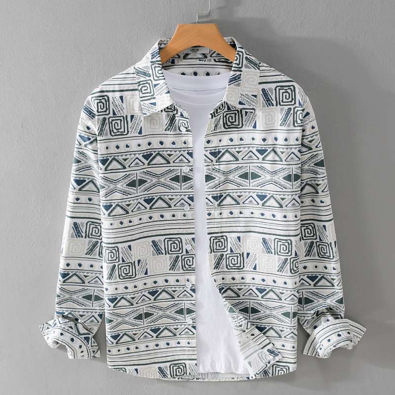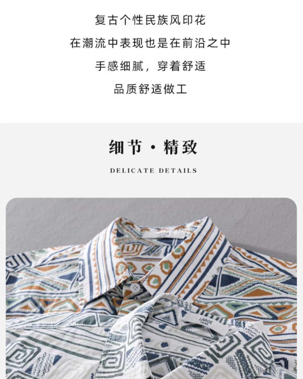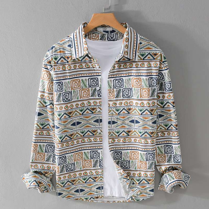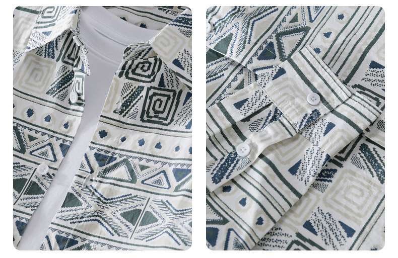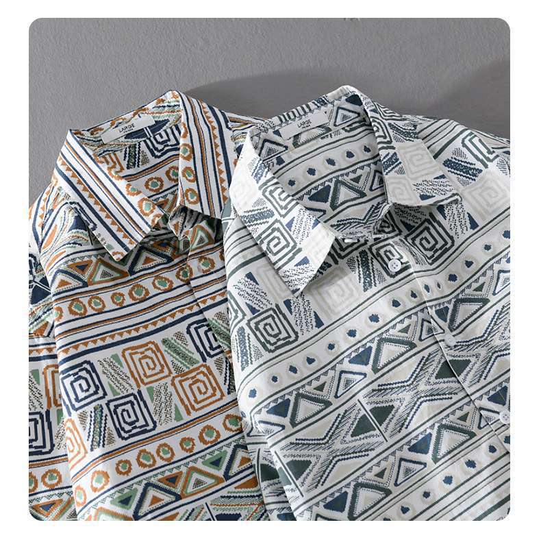 W9Q 고급 감각 미국 민족 스타일 전체 인쇄 남성 긴 소매 셔츠 가을 패션 불규칙한 셔츠 재킷스토어 가기