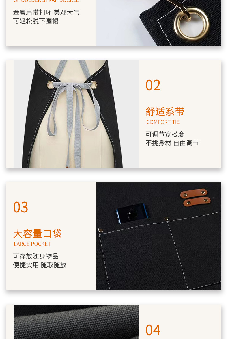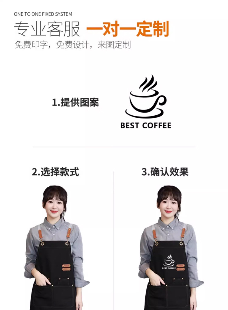캔버스 앞치마 재고 있음 도매 케이터링 작업복 커피숍 방수, 내유성 및 먼지 방지 인쇄 한 개부터 시작스토어 가기