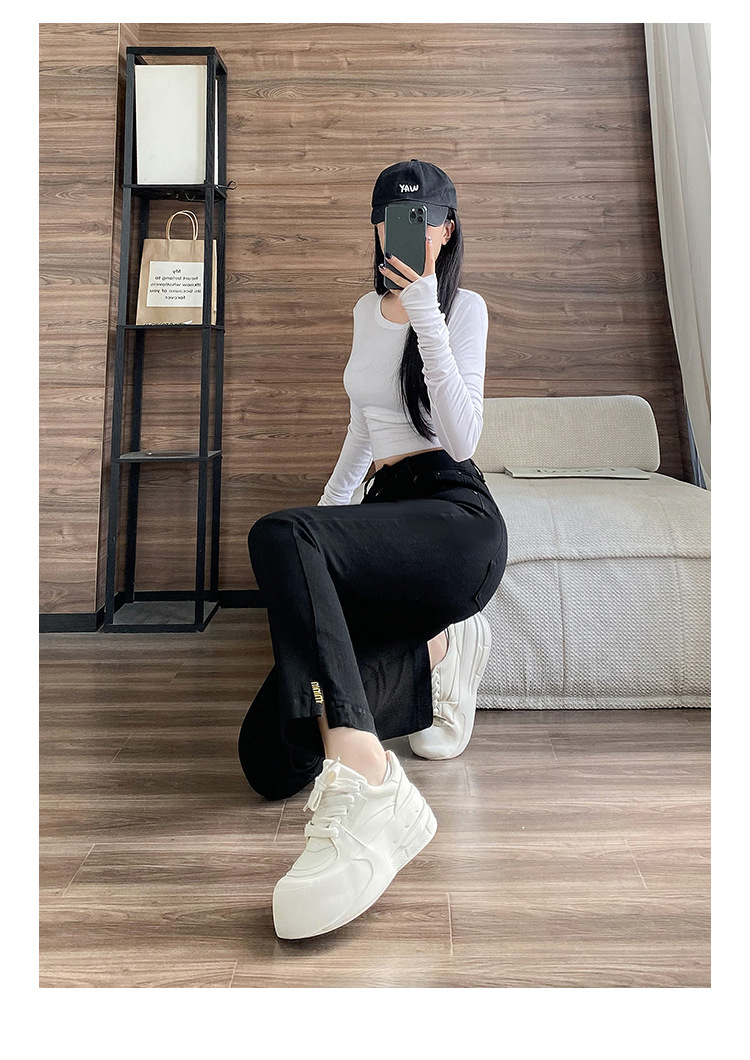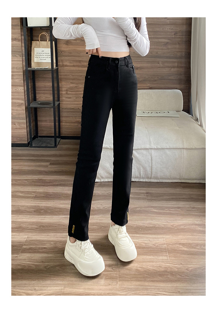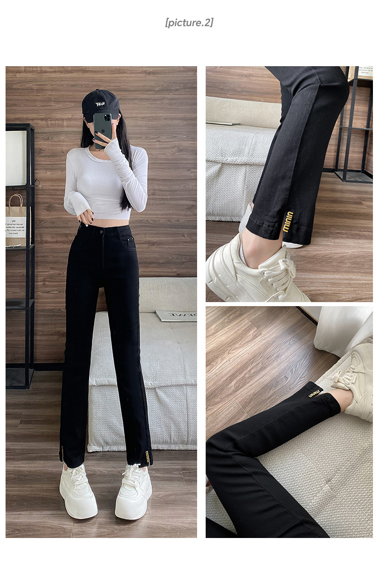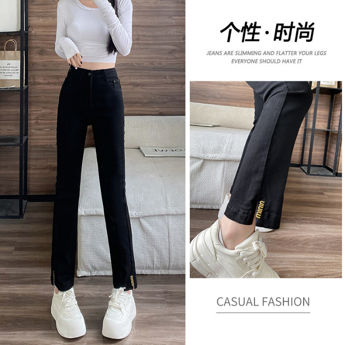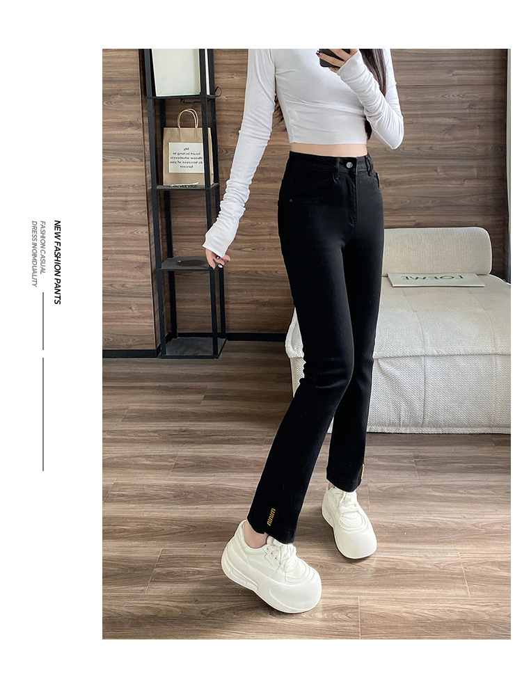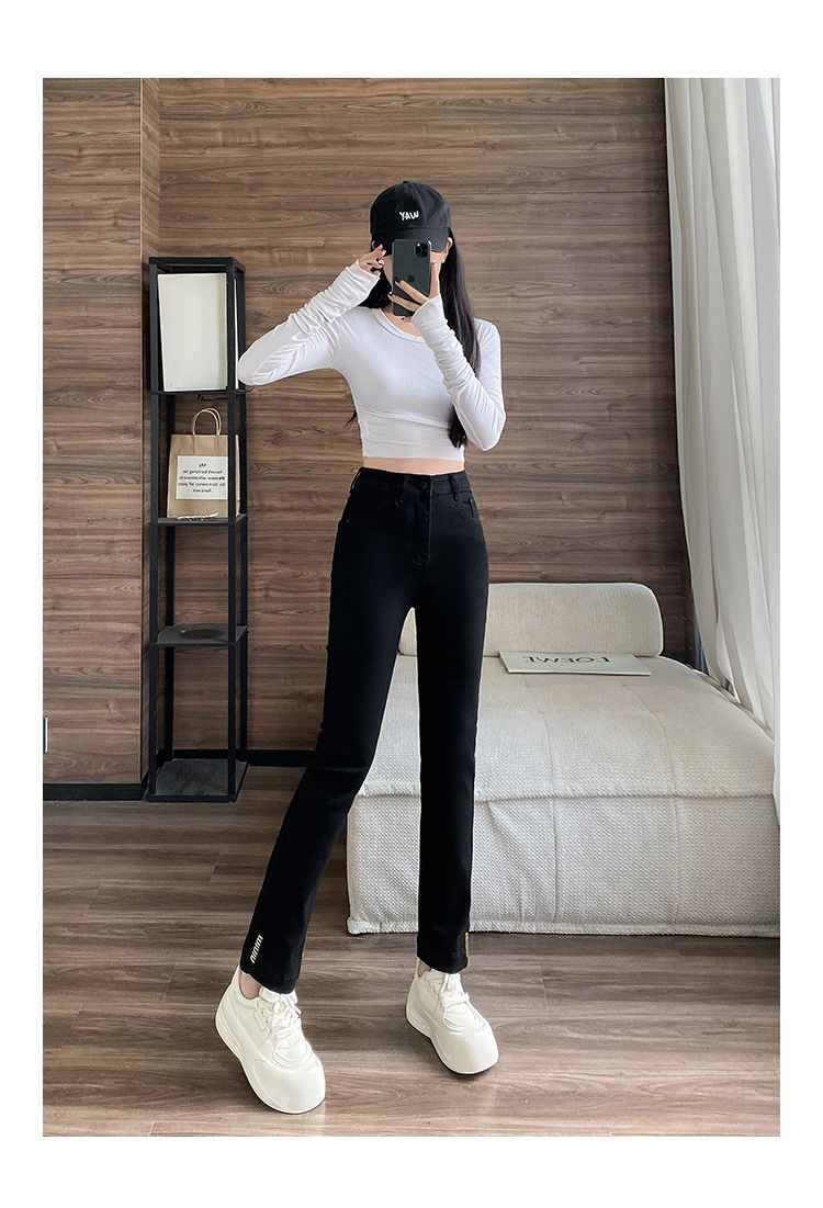 블랙 패션 독특한 스트레치 스트레이트 청바지 여성의 2024 가을 새로운 슬림 핏 올매치 9 점 담배 바지스토어 가기