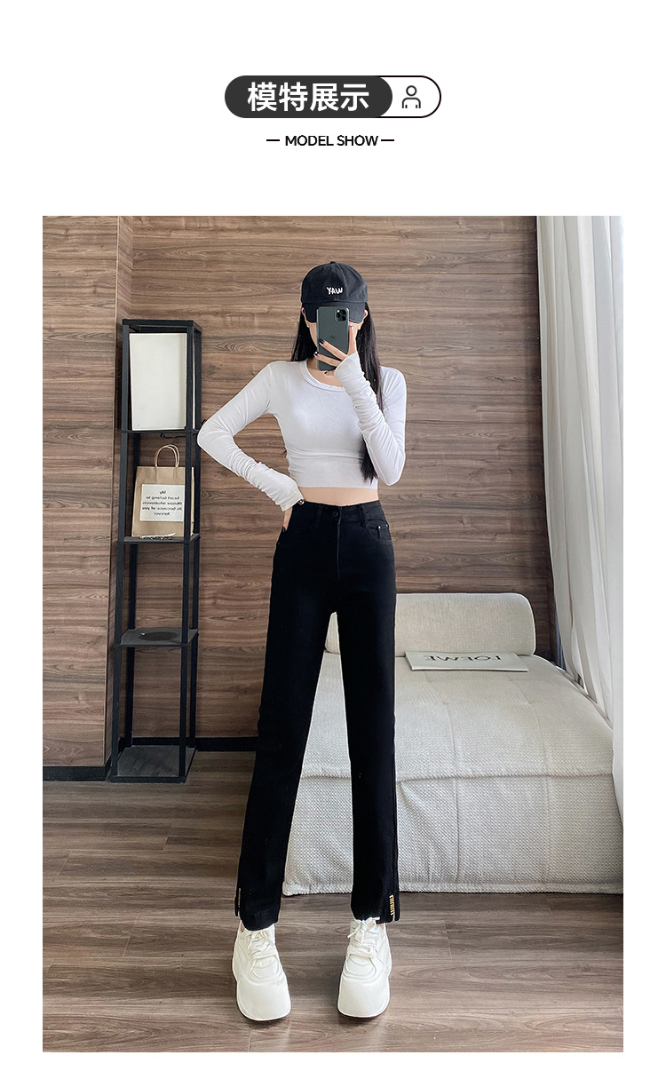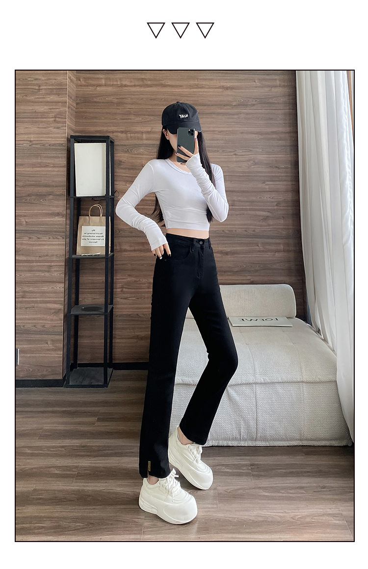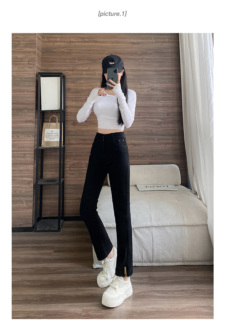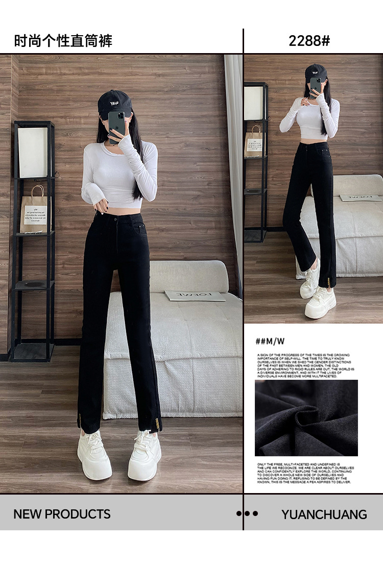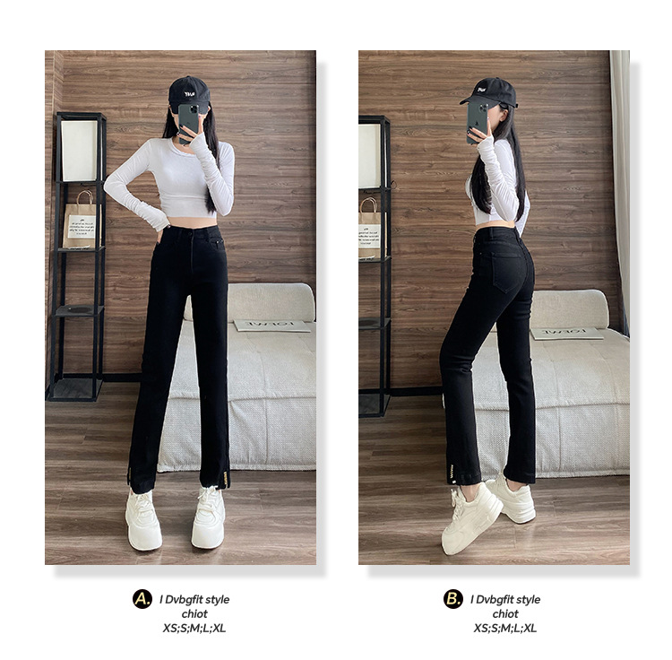 블랙 패션 독특한 스트레치 스트레이트 청바지 여성의 2024 가을 새로운 슬림 핏 올매치 9 점 담배 바지스토어 가기