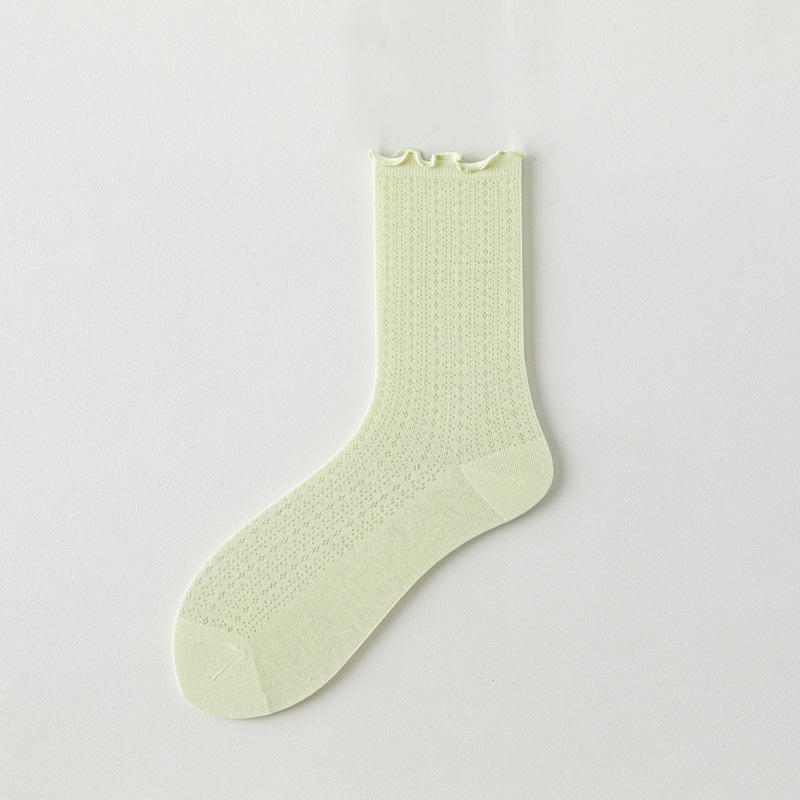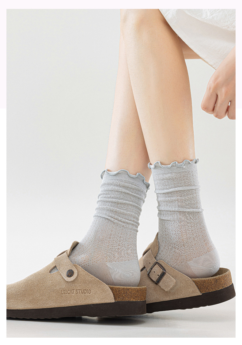 여름 얇은 스태킹 양말 달 양말 화이트 우드 귀 느슨한 입 그물 양말 여성면 땀 흡수 중공 튜브 양말