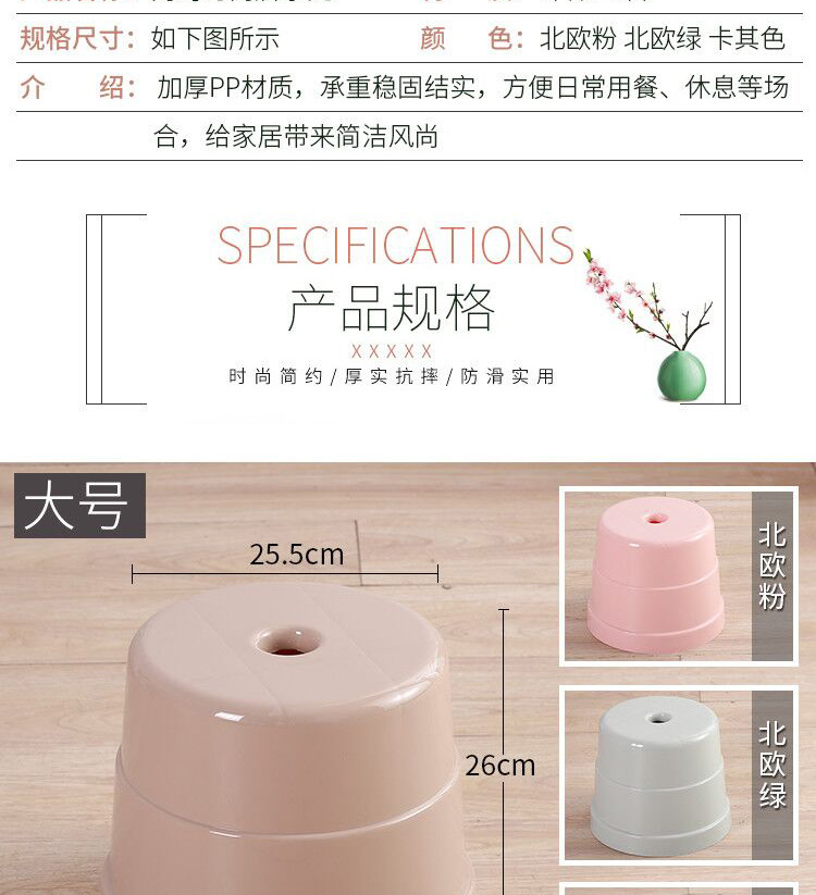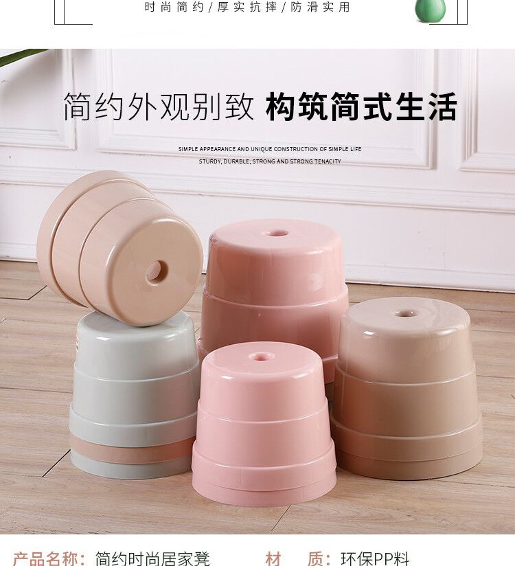 플라스틱 두꺼운 가정용 커피 테이블, 낮은 의자, 성인용 작은 벤치, 세련된 원형 의자, 신발 교환용 목욕 의자, 어린이용 의자스토어 가기