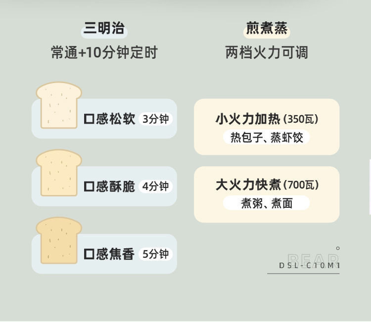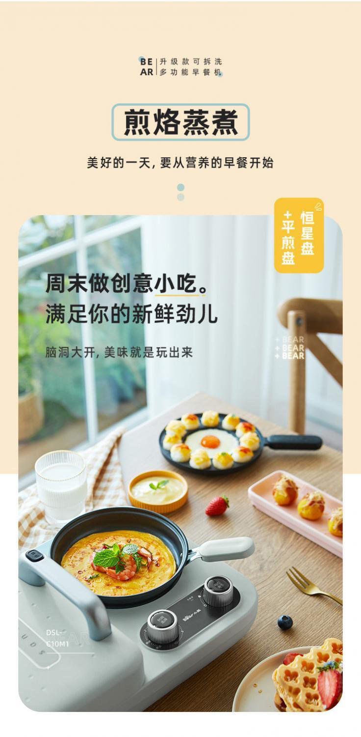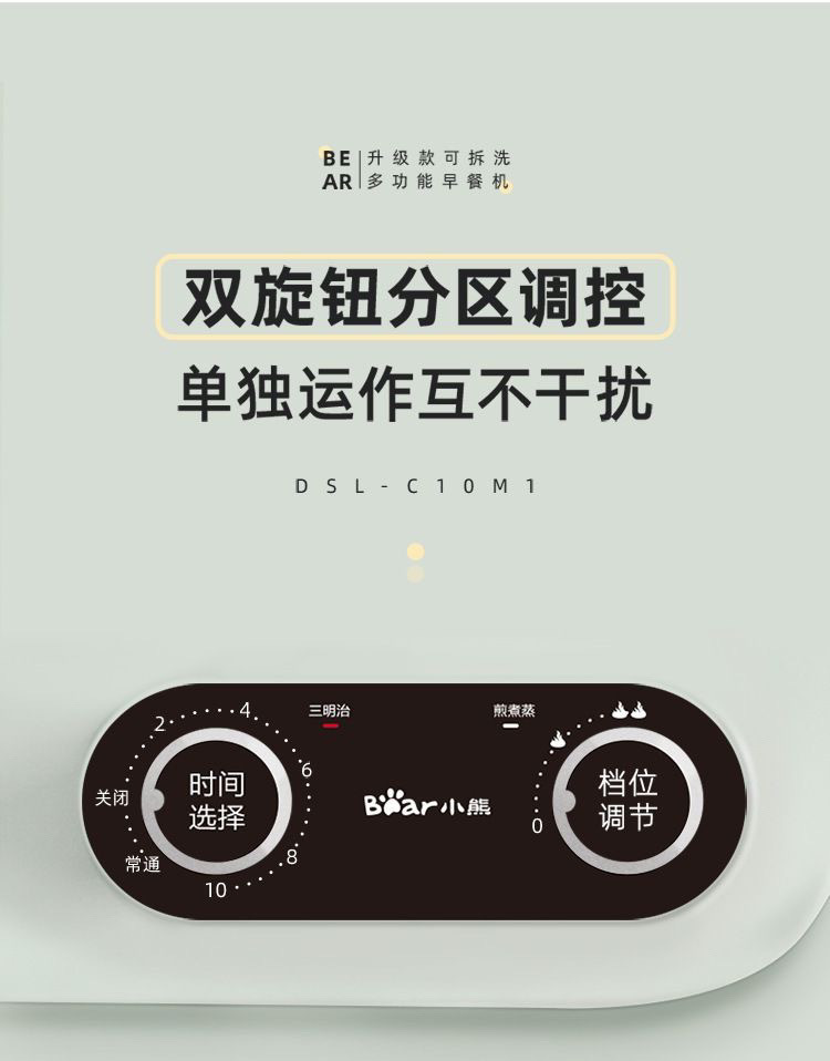 小熊早餐机DSL-C10M1烤面包机家用早餐机多士炉可拆拆卸款