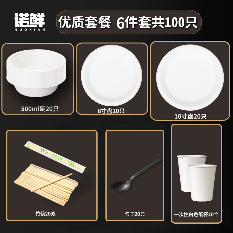 새로운 일회용 종이 그릇, 상업용 가정용 원형 요리 식기, 그릇과 젓가락 세트, 생분해성 두꺼운 바베큐 그릇스토어 가기