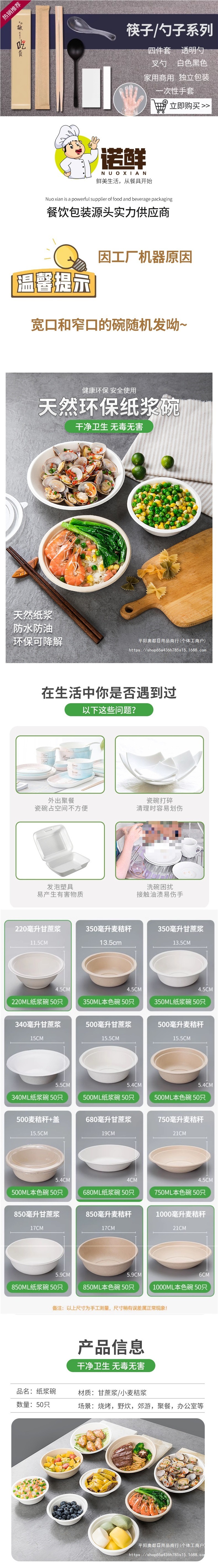 새로운 일회용 종이 그릇, 상업용 가정용 원형 요리 식기, 그릇과 젓가락 세트, 생분해성 두꺼운 바베큐 그릇