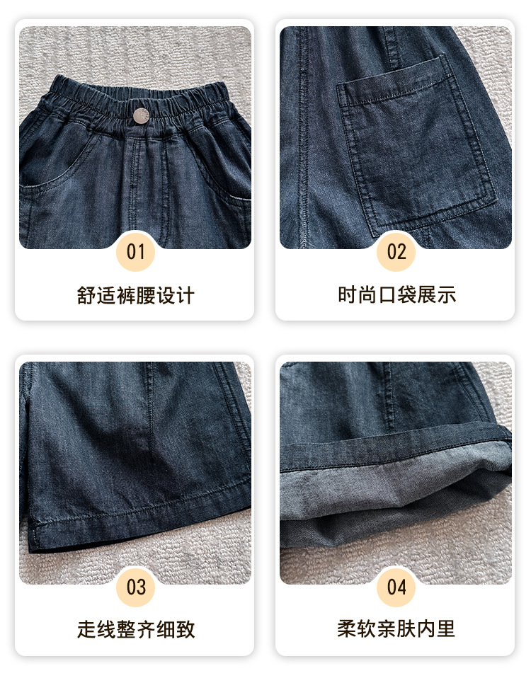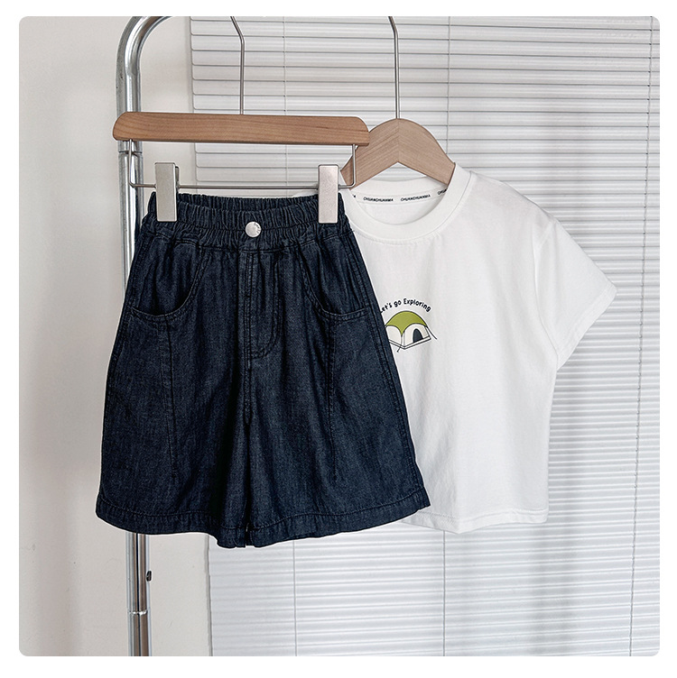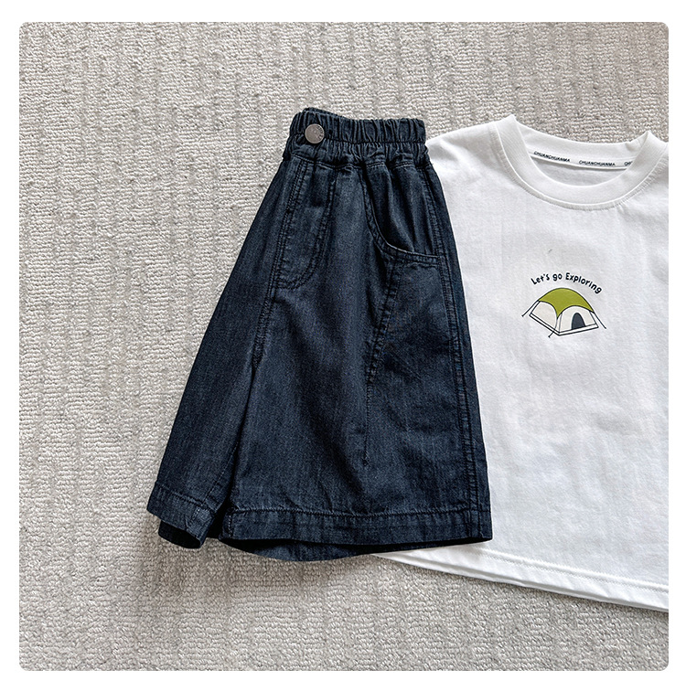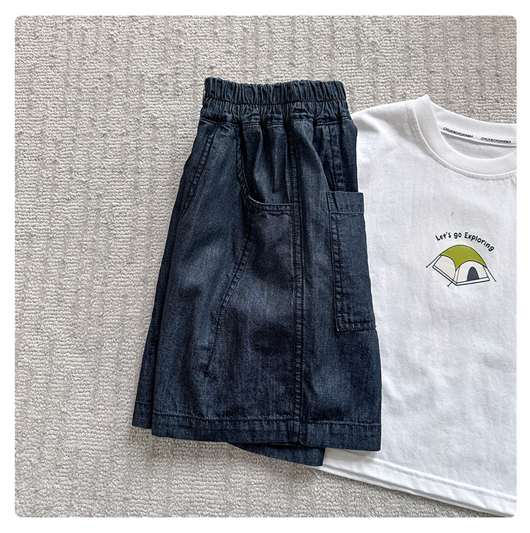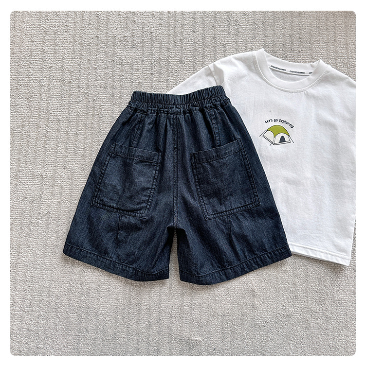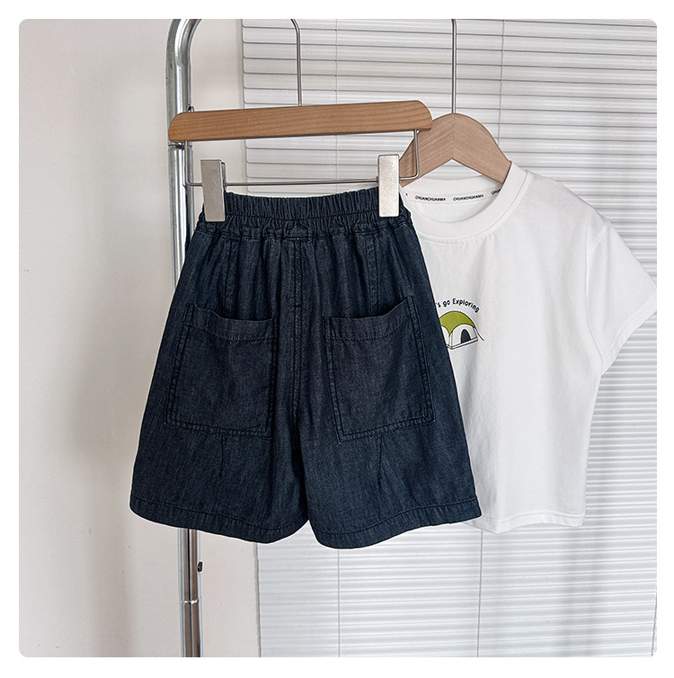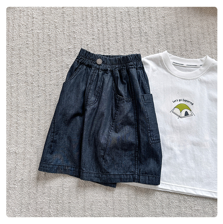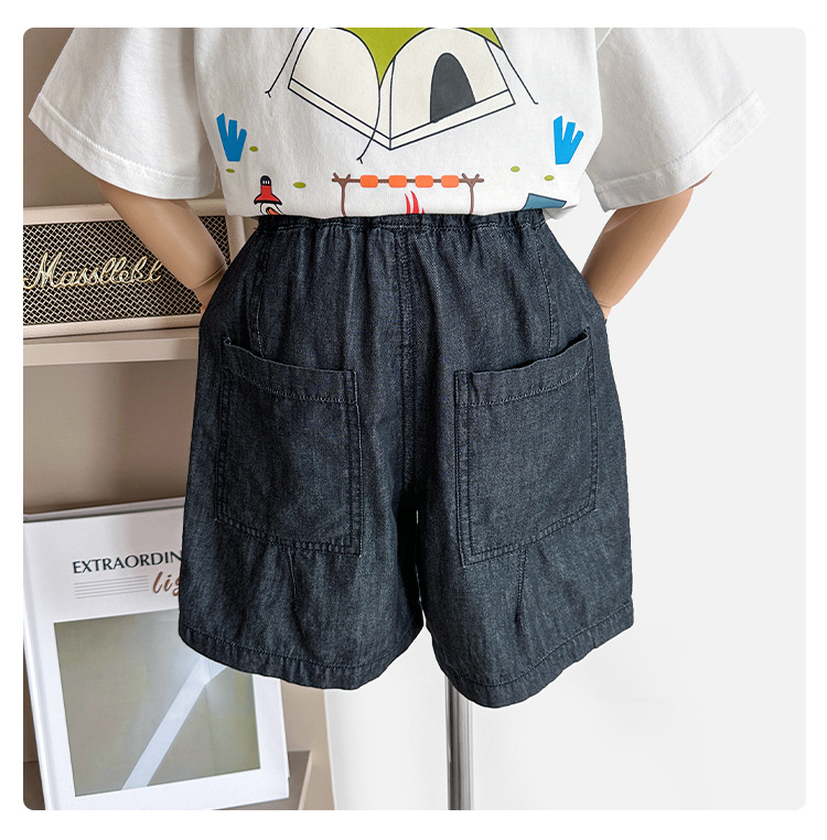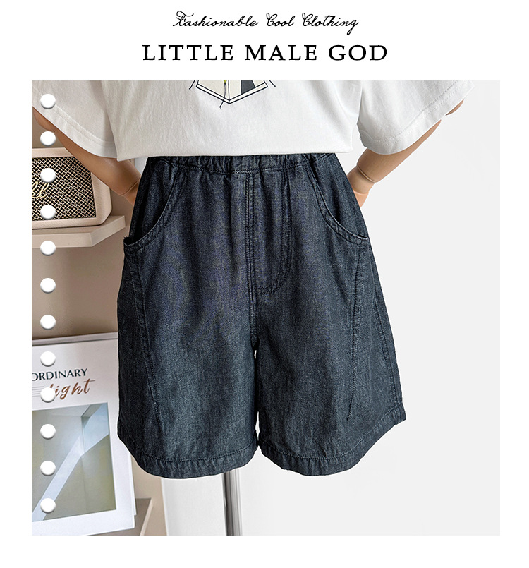 Xian'ao 2025 새로운 여름 아동 바지, 아동용 다용도 스타일 5부 바지, 소년 맞춤형 프레스 라인 데님 반바지스토어 가기