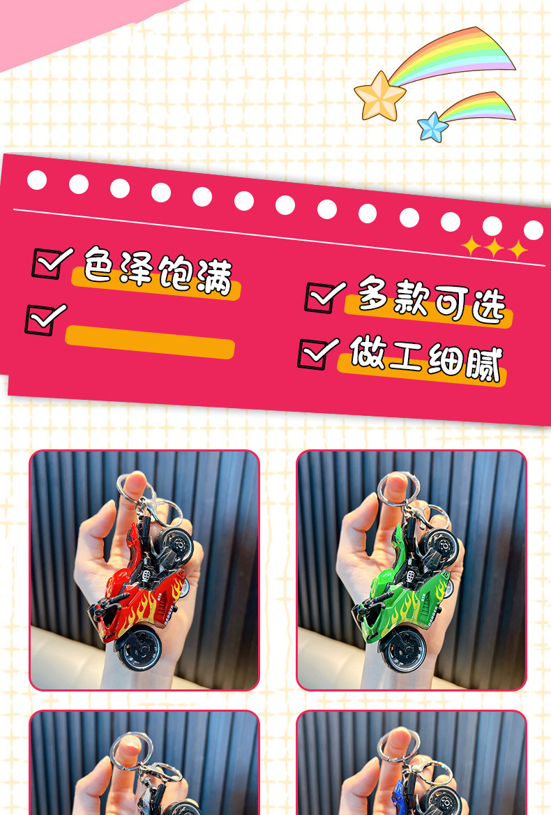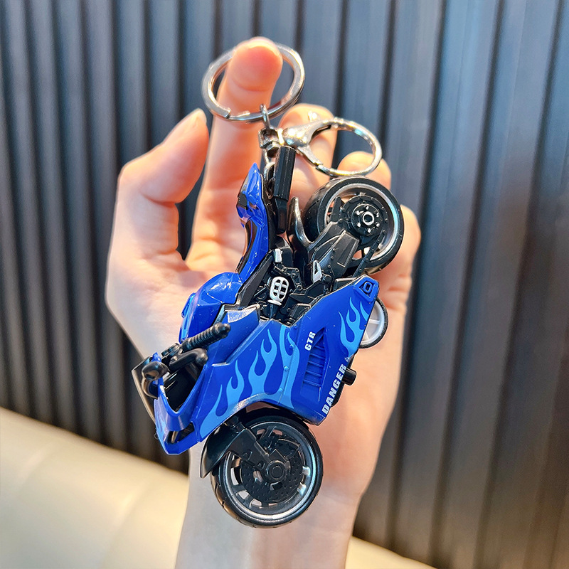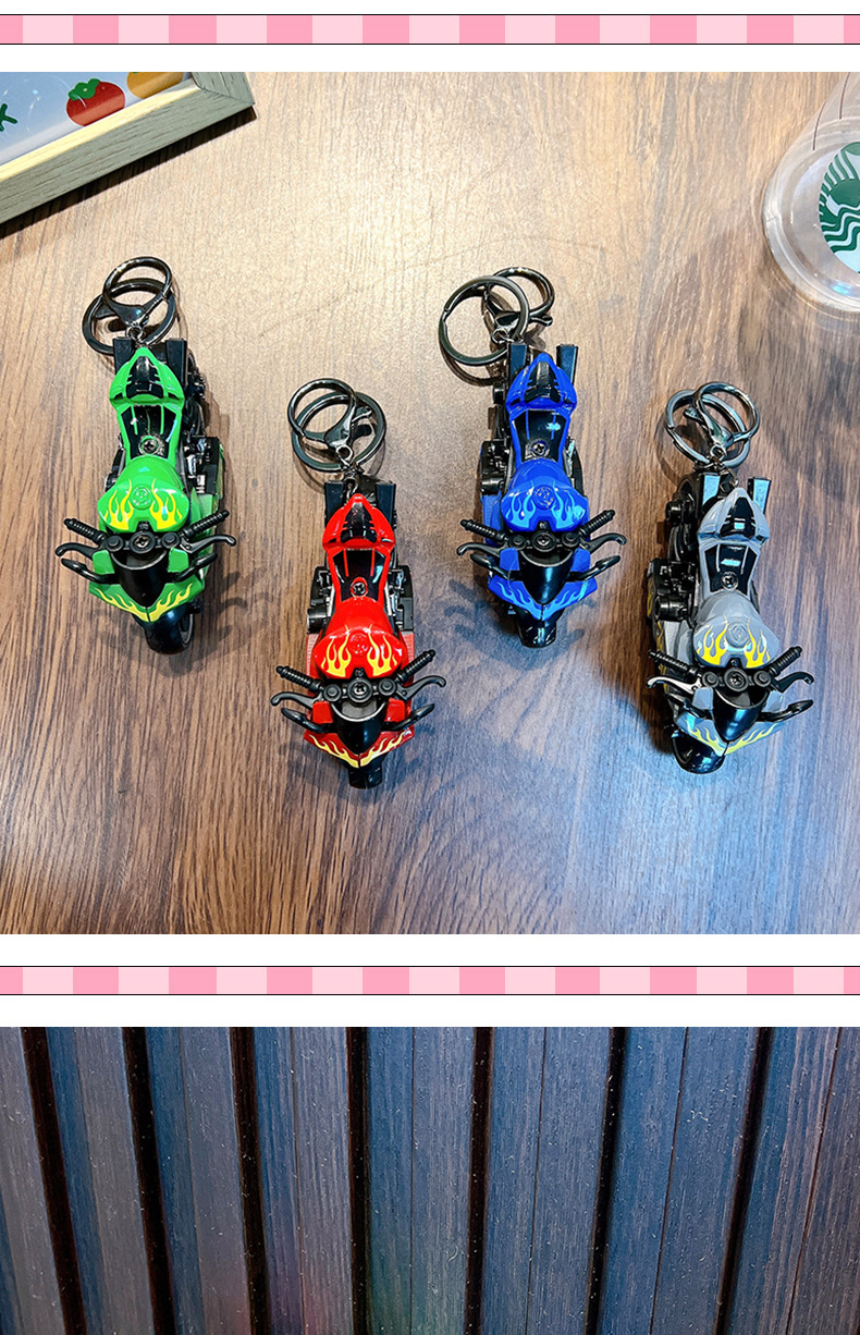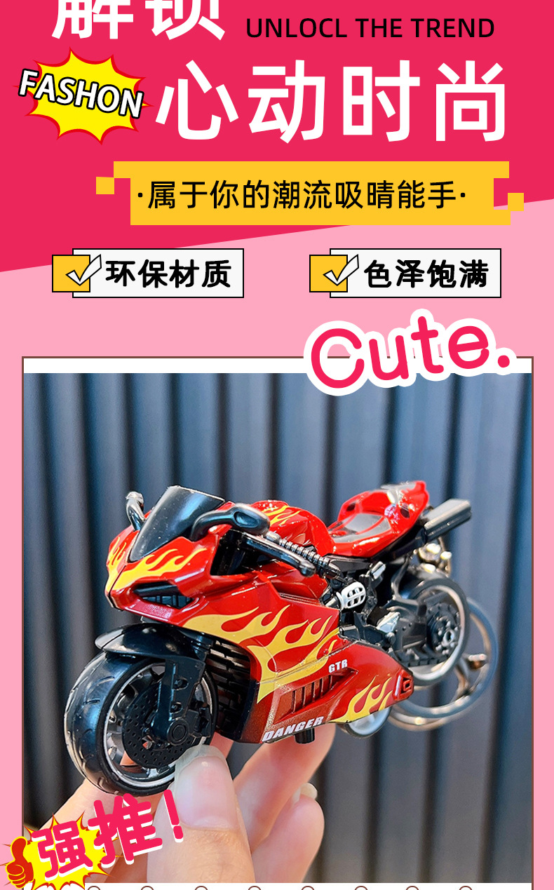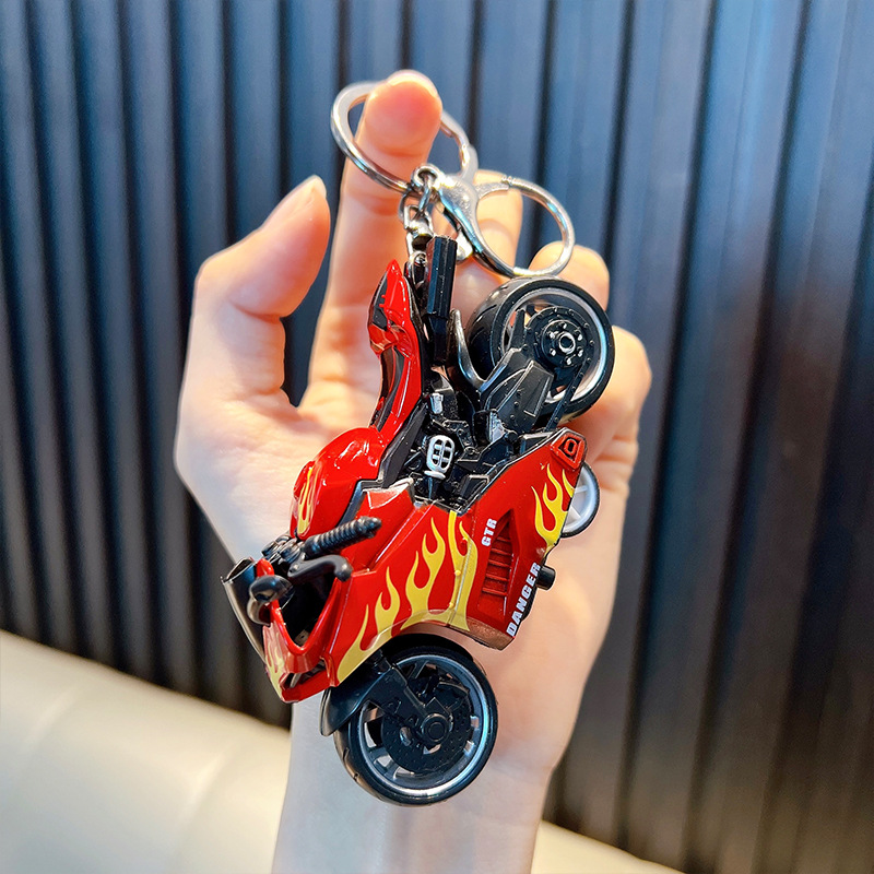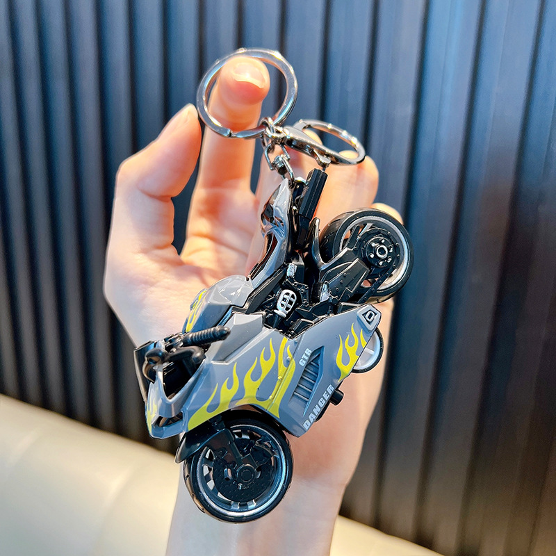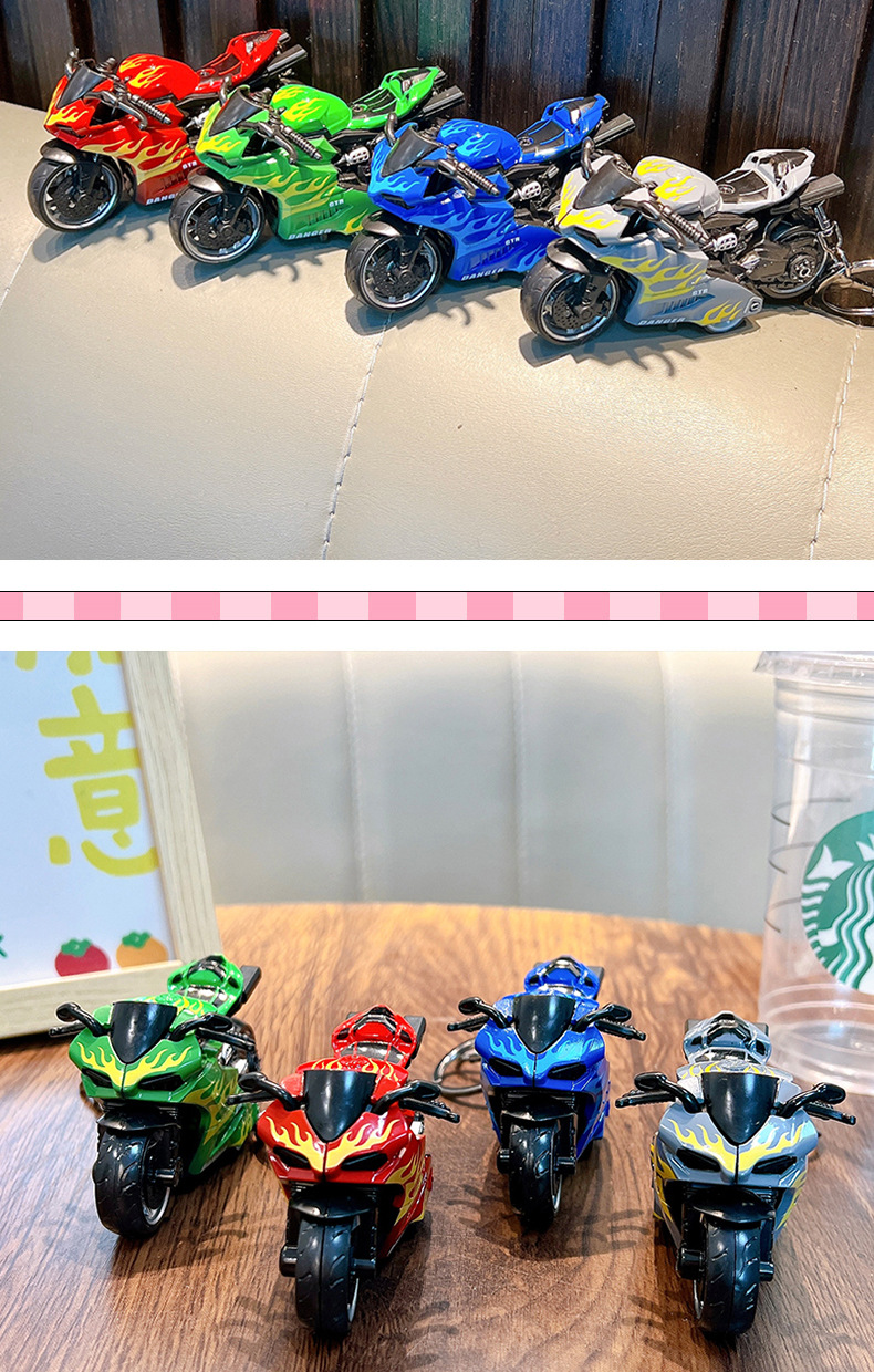 불꽃 오토바이 장난감 키 체인 소년 합금 기관차 모델 펜던트 백 포스 관성 자동차 키 체인스토어 가기
