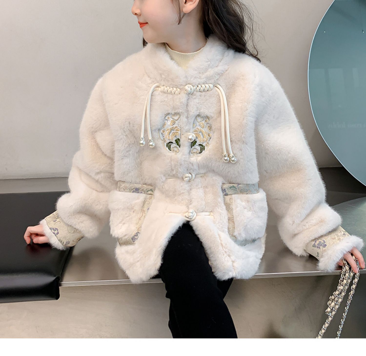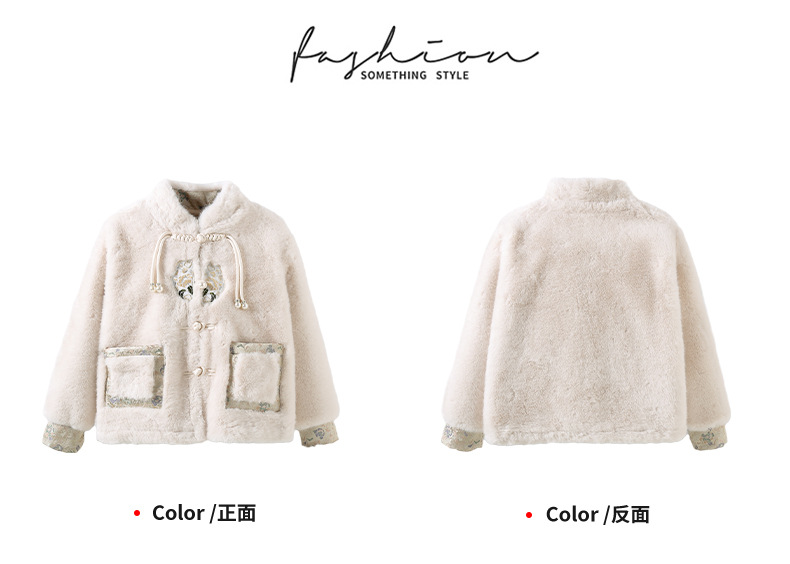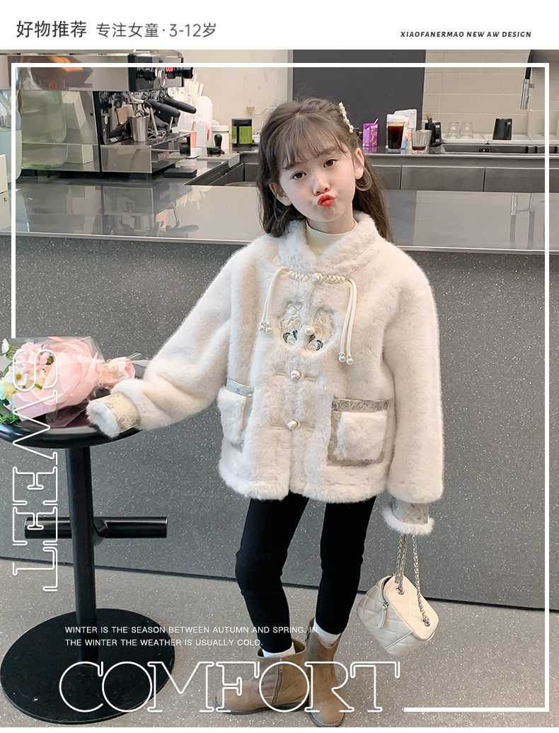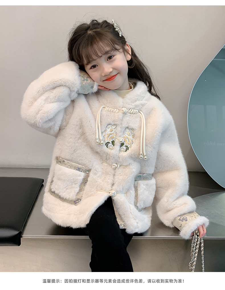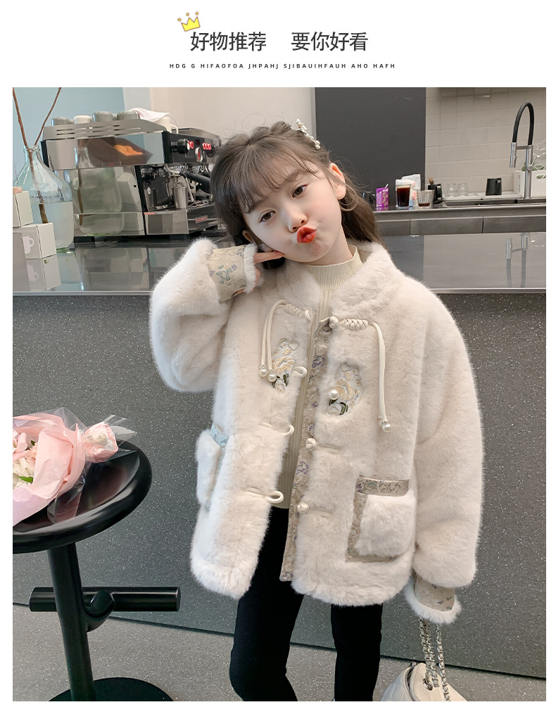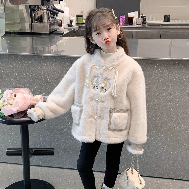 여아 중국 스타일 재킷 2024 가을 겨울 새로운 스타일 아동용 두꺼운 모직 스웨터 중대형 아동용 겨울상의 유행스토어 가기