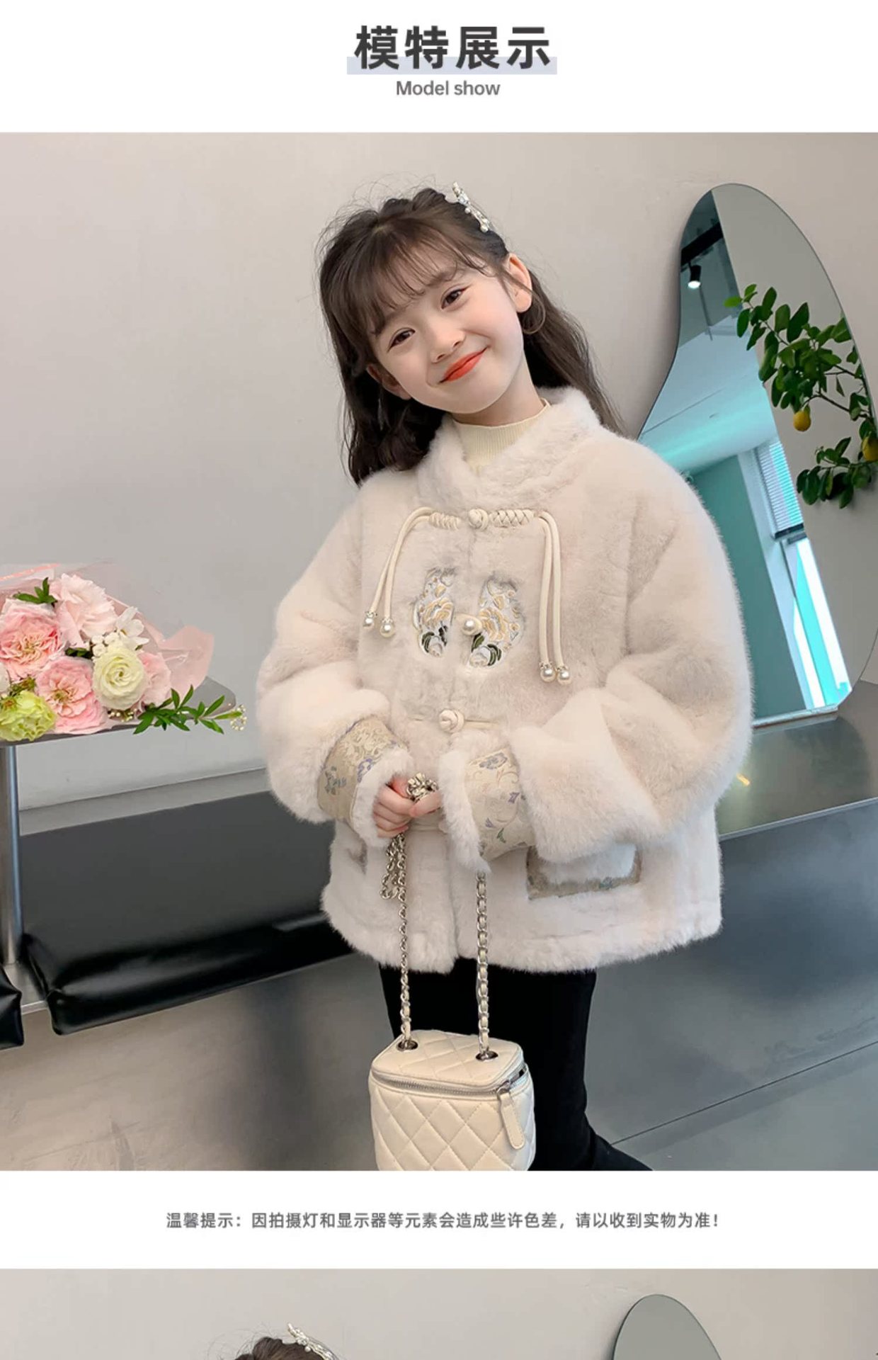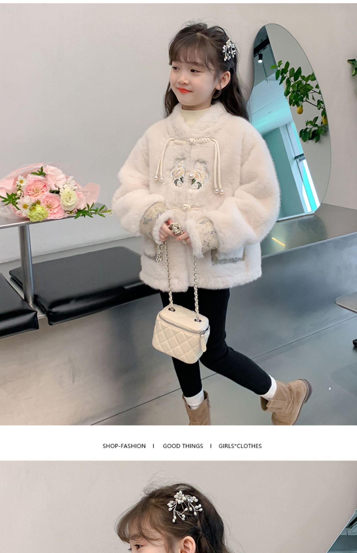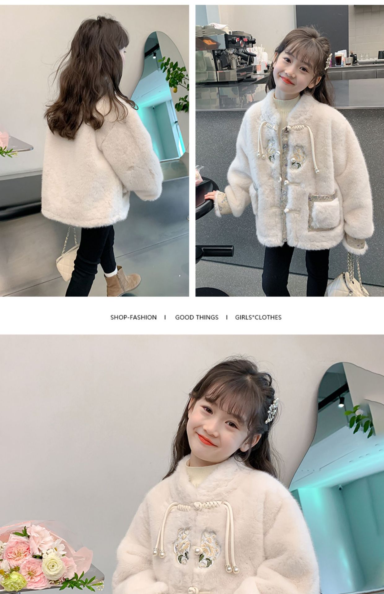 여아 중국 스타일 재킷 2024 가을 겨울 새로운 스타일 아동용 두꺼운 모직 스웨터 중대형 아동용 겨울상의 유행스토어 가기