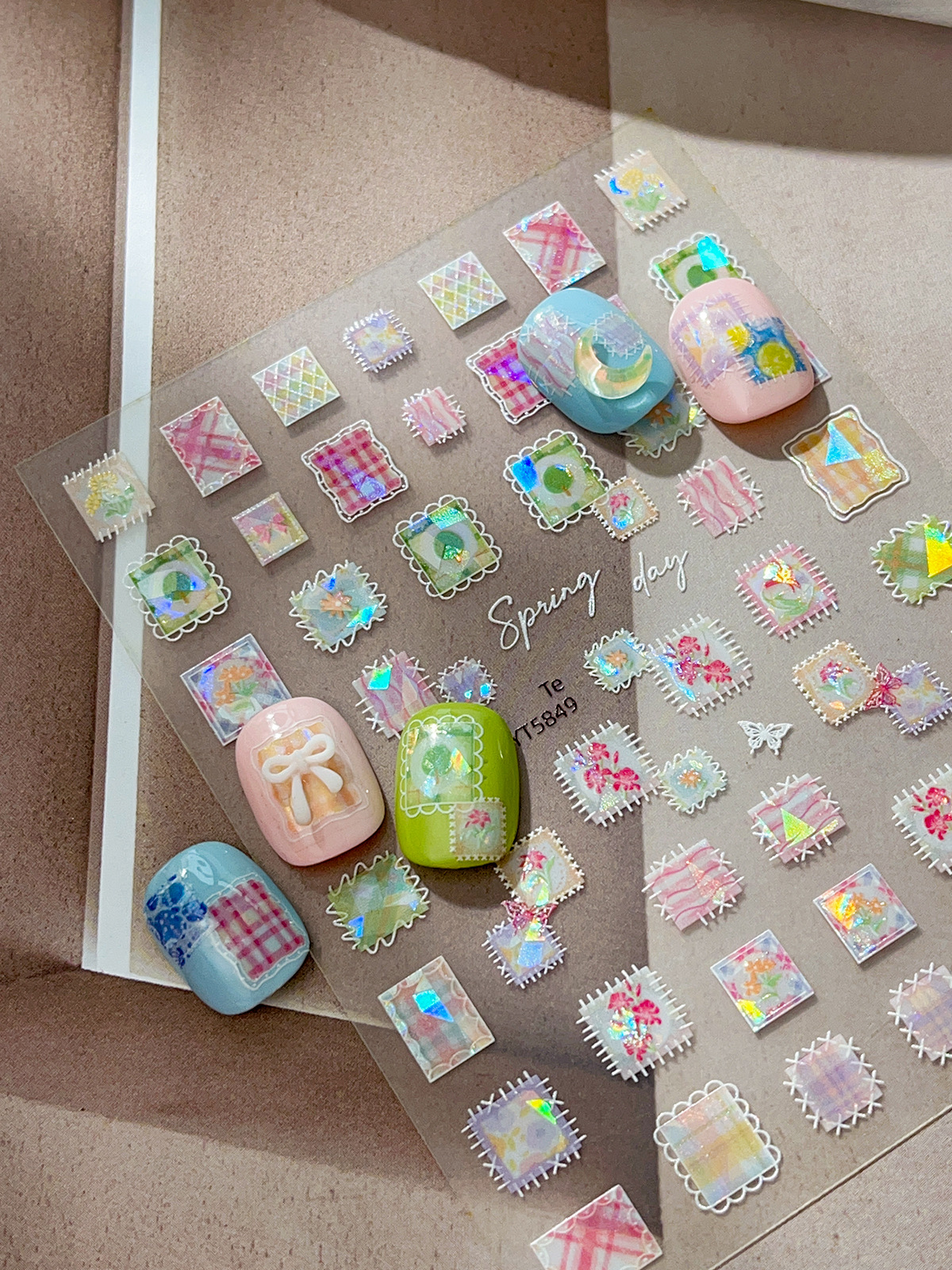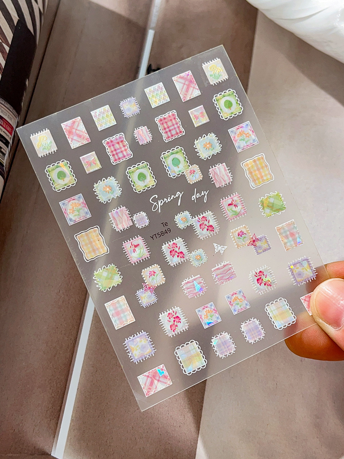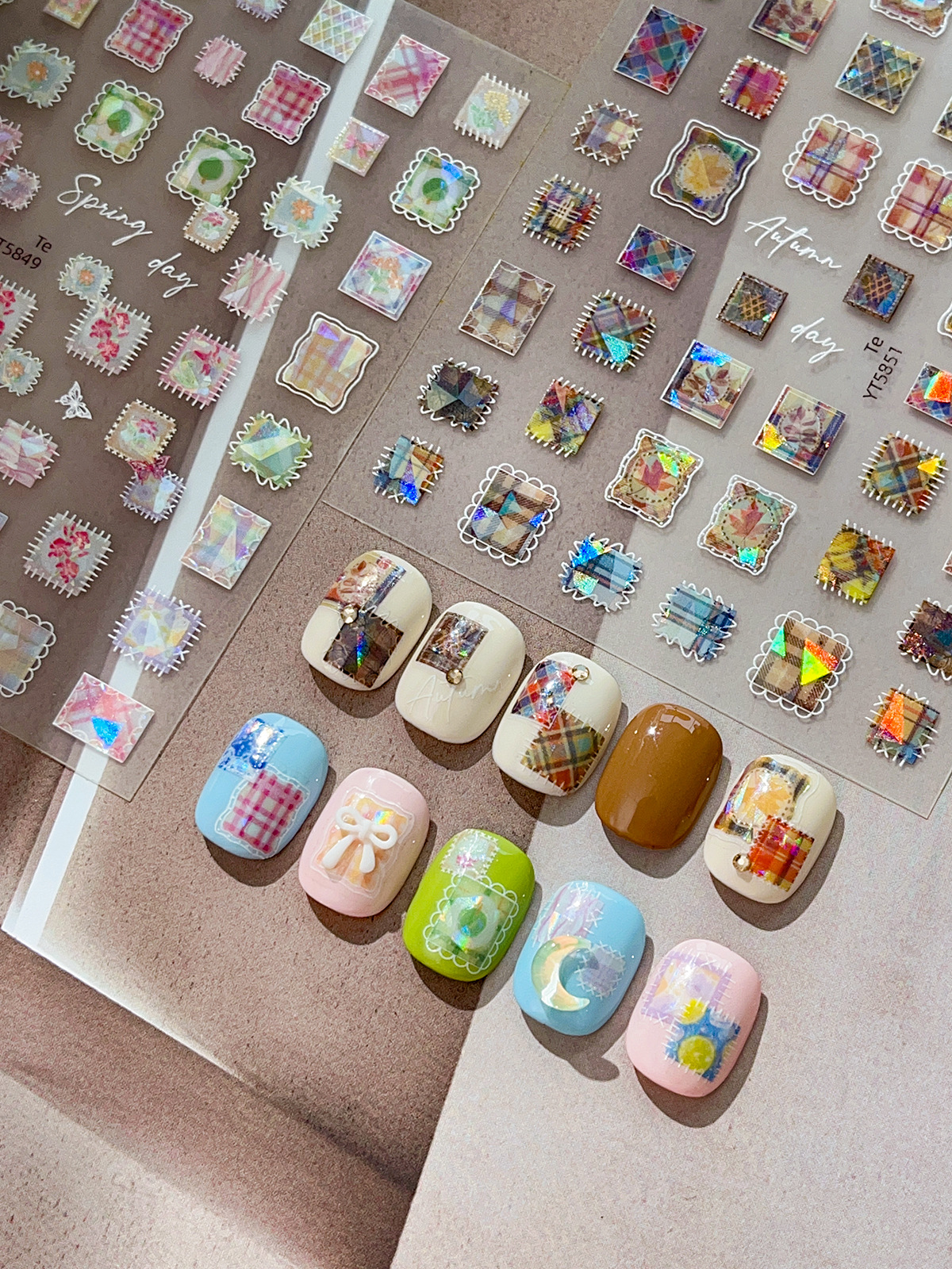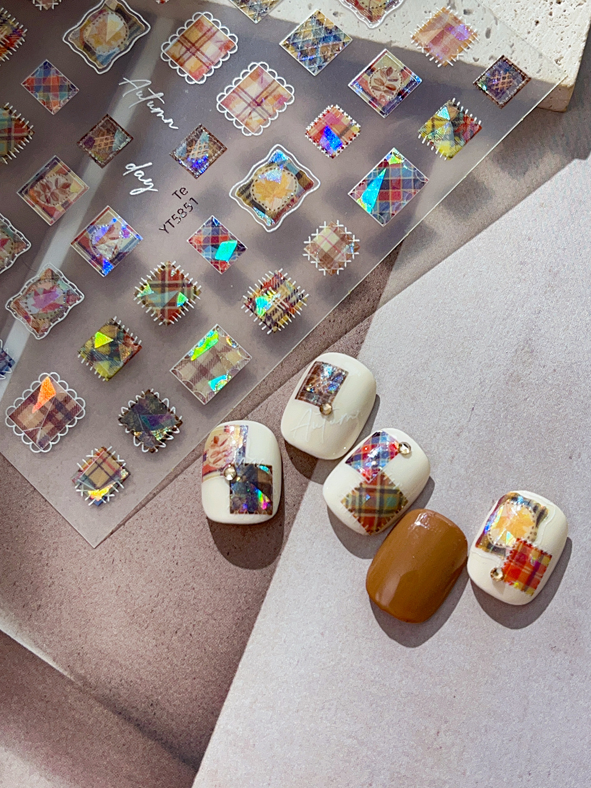YITU 개미 그림 쉘 라이트 패치 워크 네일 아트 스티커 절묘한 다채로운 격자 무늬 레트로 인터넷 빨간 장식 스티커 YT5849스토어 가기