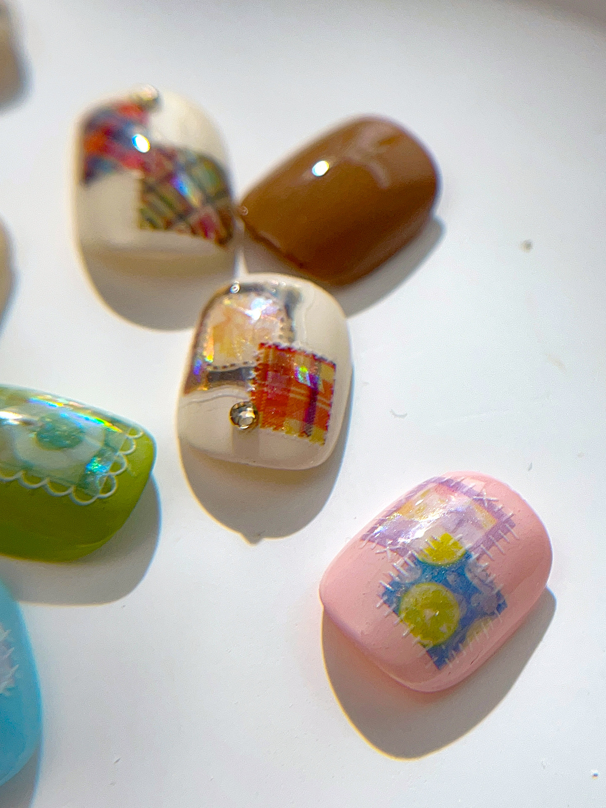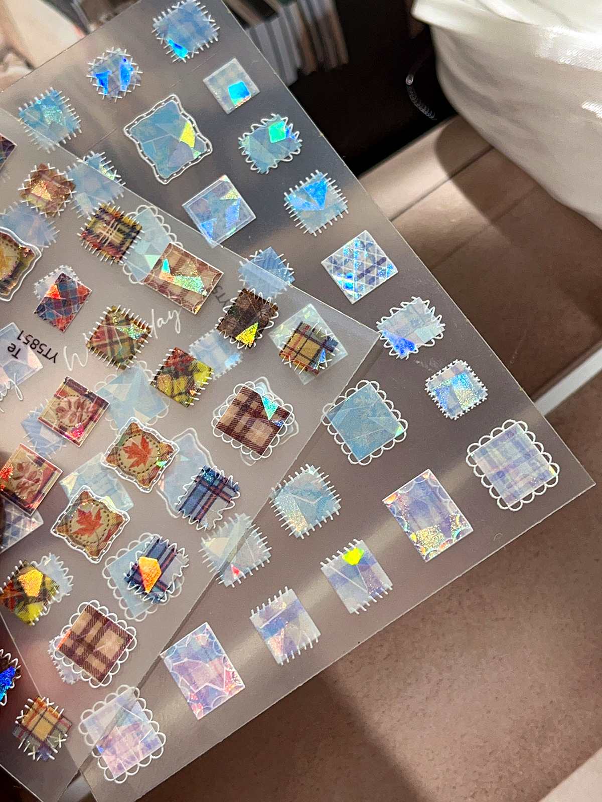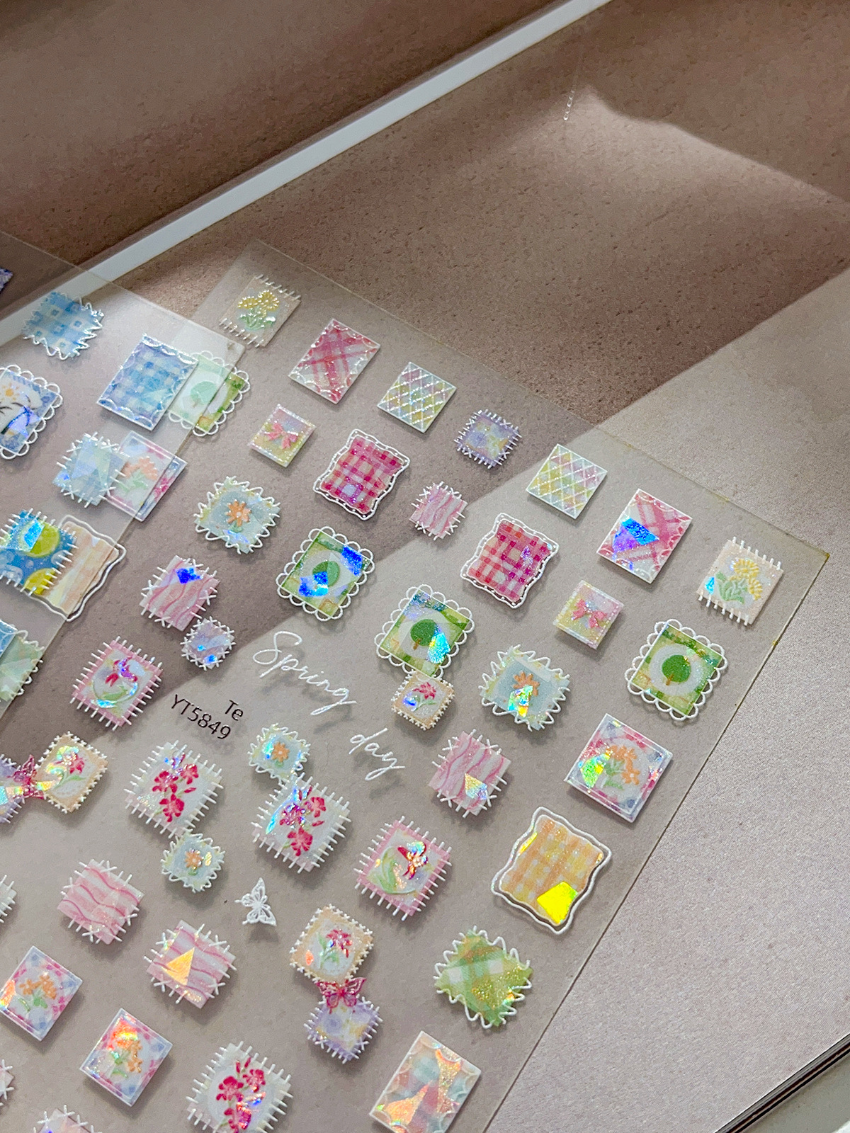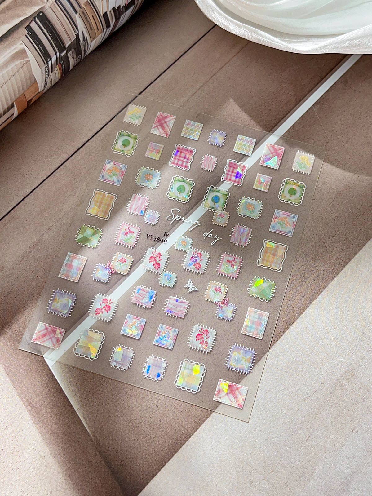 YITU 개미 그림 쉘 라이트 패치 워크 네일 아트 스티커 절묘한 다채로운 격자 무늬 레트로 인터넷 빨간 장식 스티커 YT5849스토어 가기