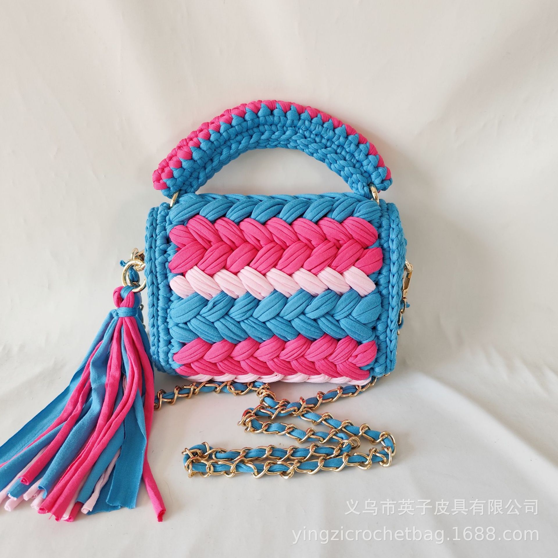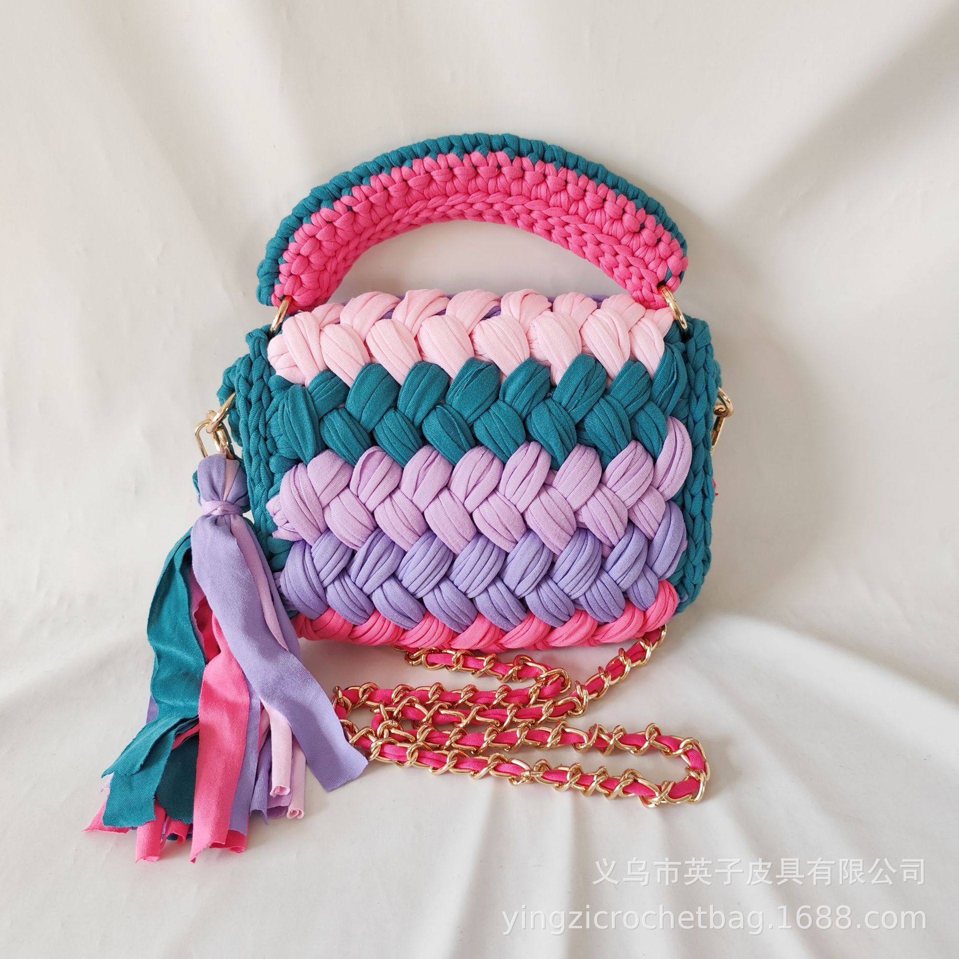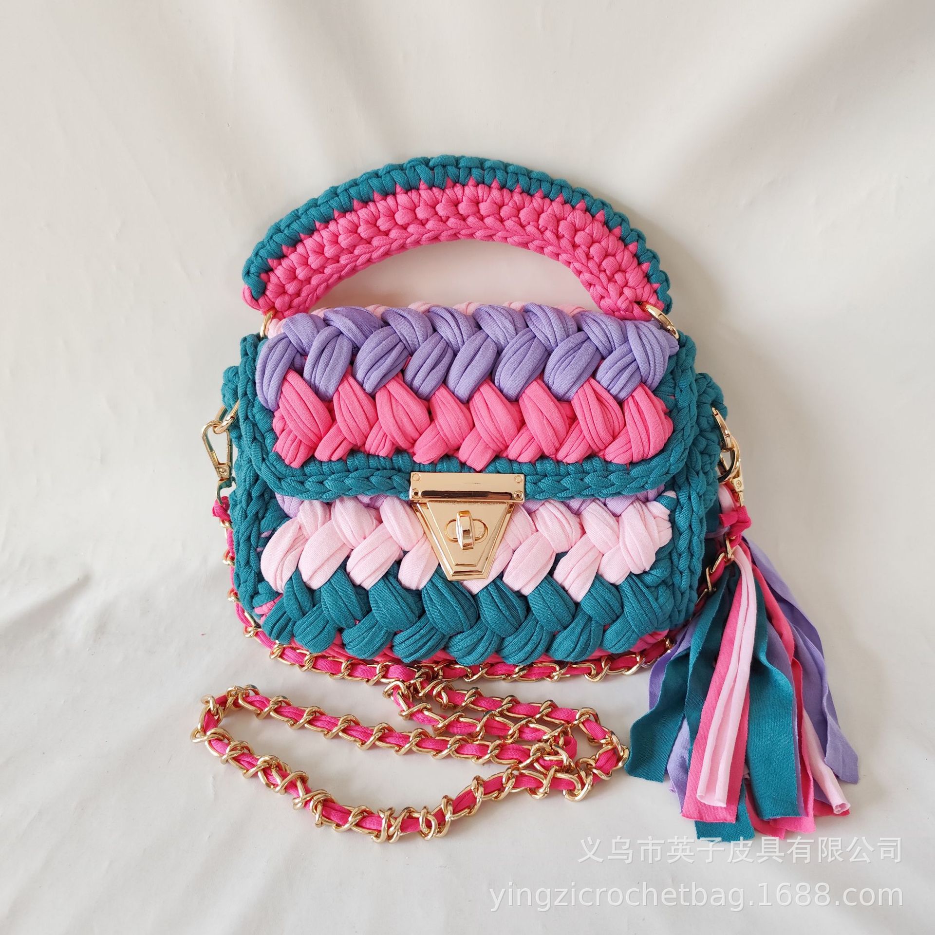 2025 새로운 손으로 짠 대비 색상 스티칭 컬러 체인 술 핸드백 메신저 가방
