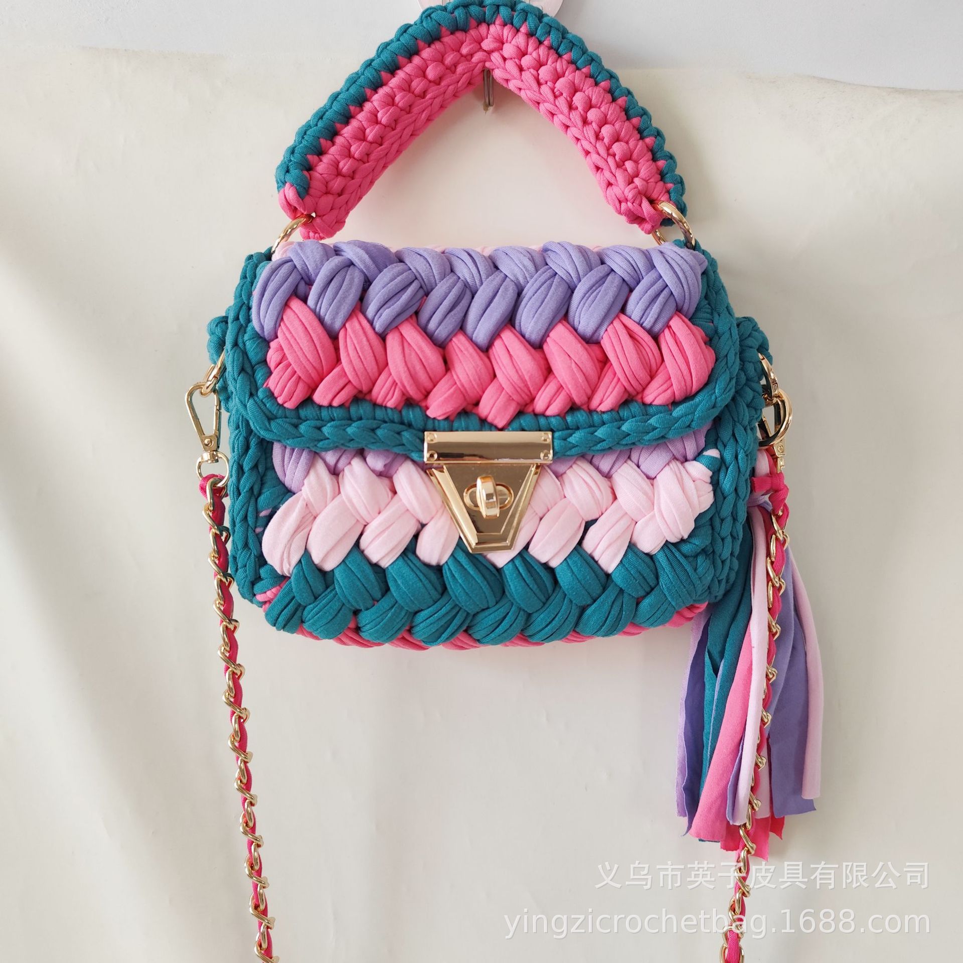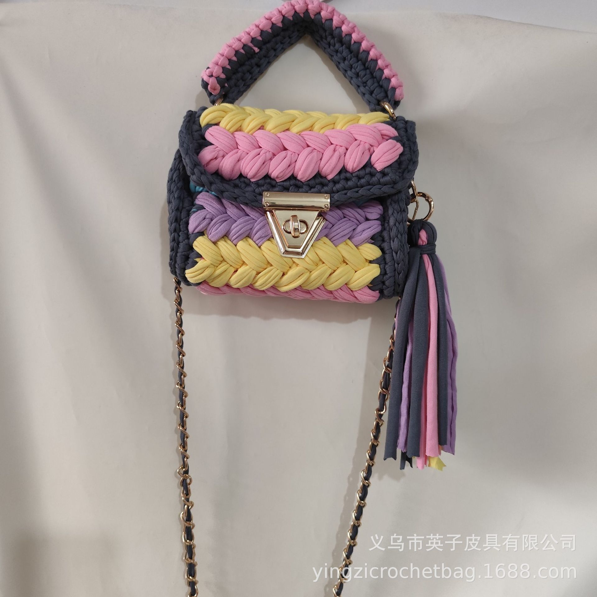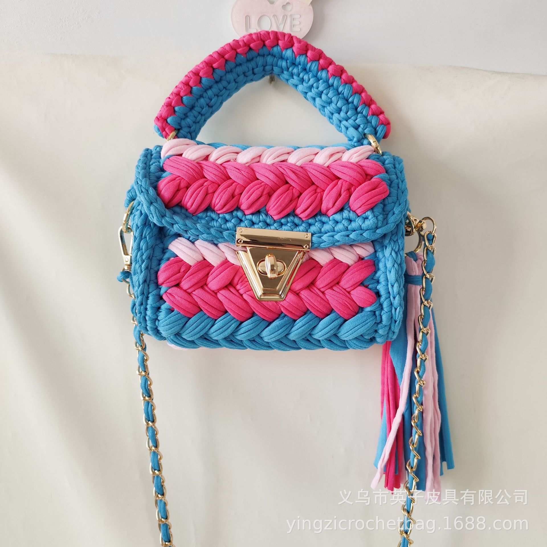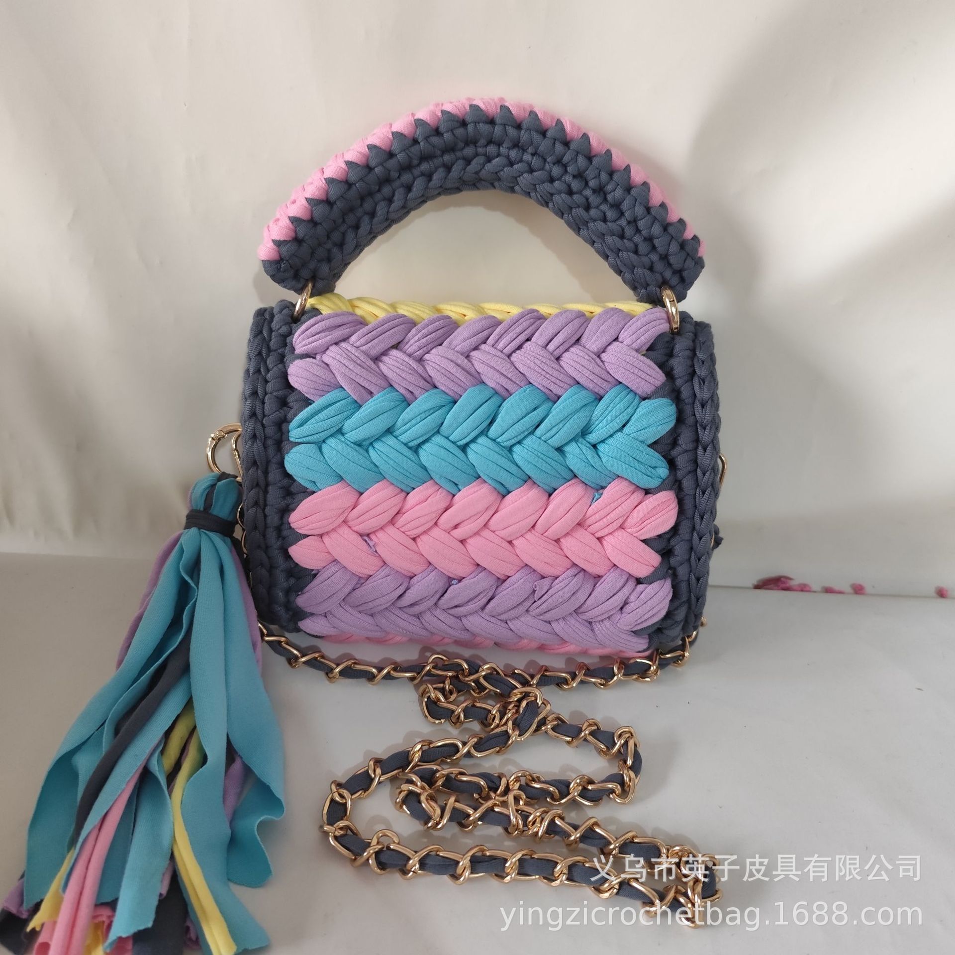 2025 새로운 손으로 짠 대비 색상 스티칭 컬러 체인 술 핸드백 메신저 가방