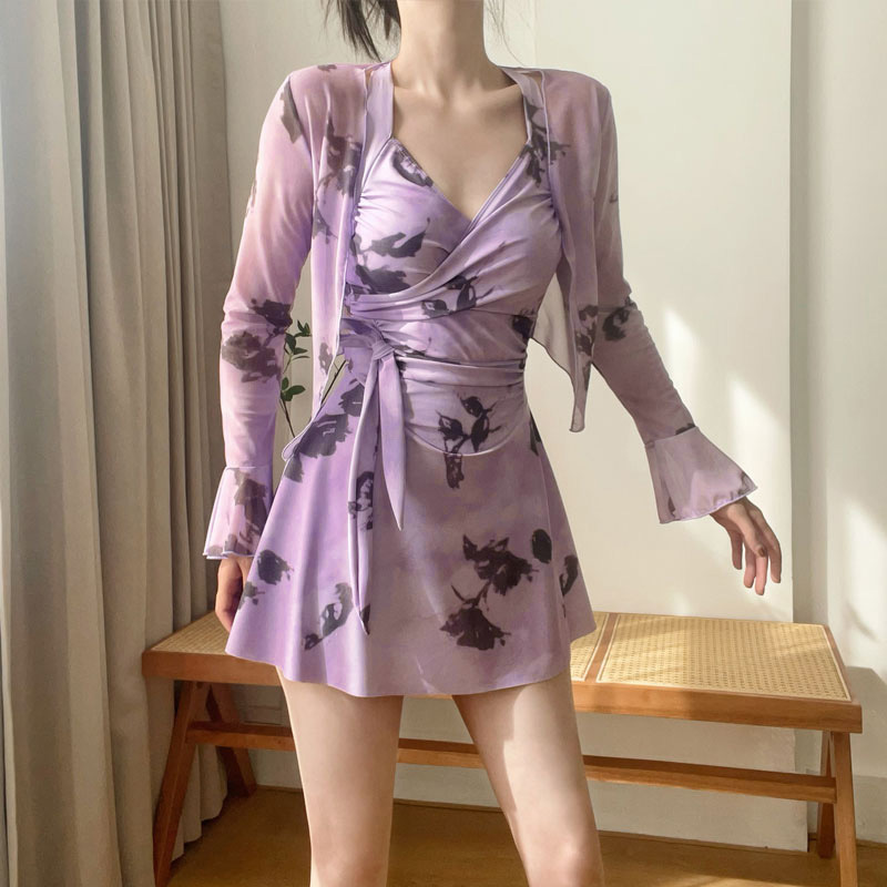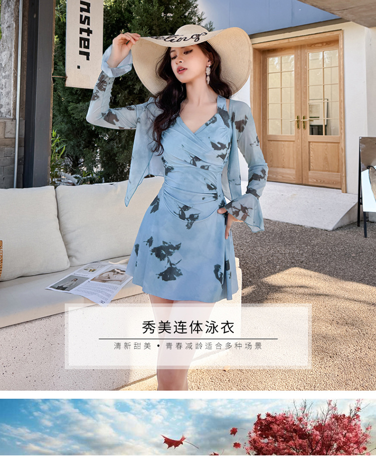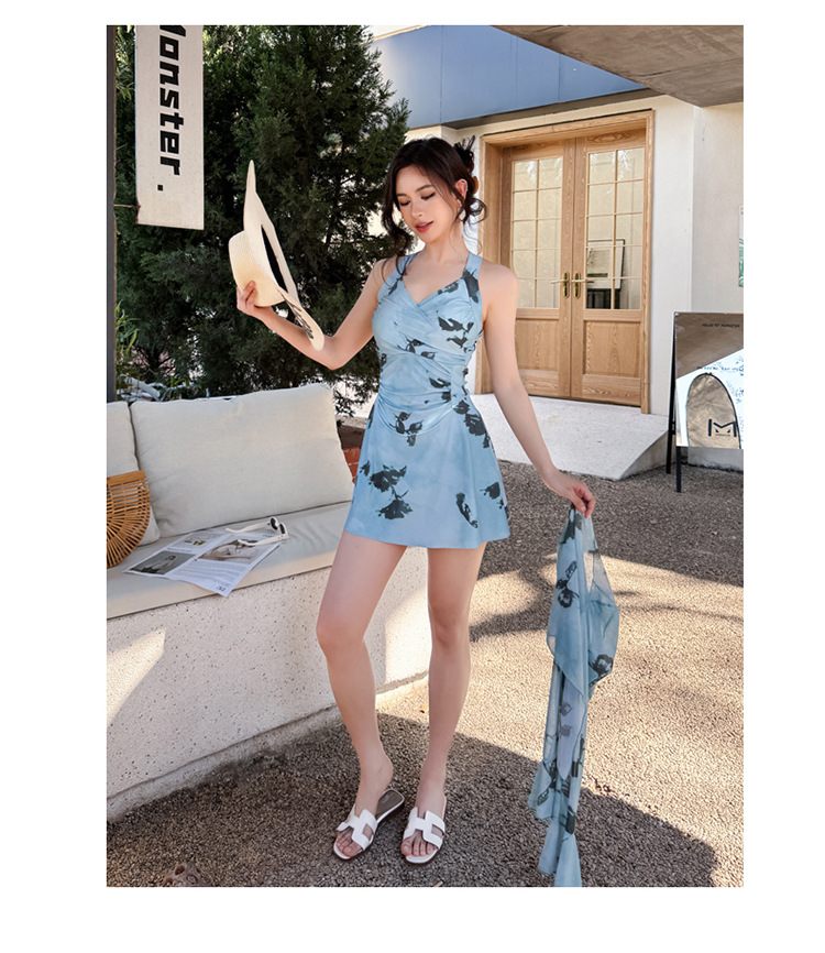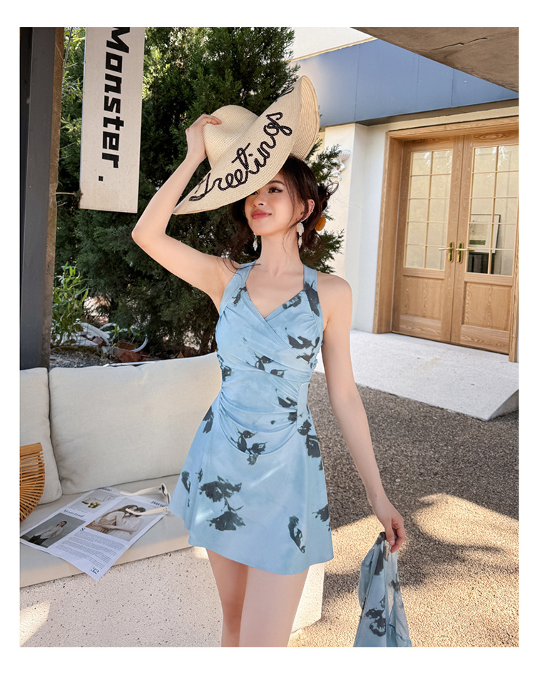 2025 신상 수영복 여성 원피스 스커트 스타일 보수적인 배 커버 슬리밍 섹시한 한국 인스 스타일 온천 수영복