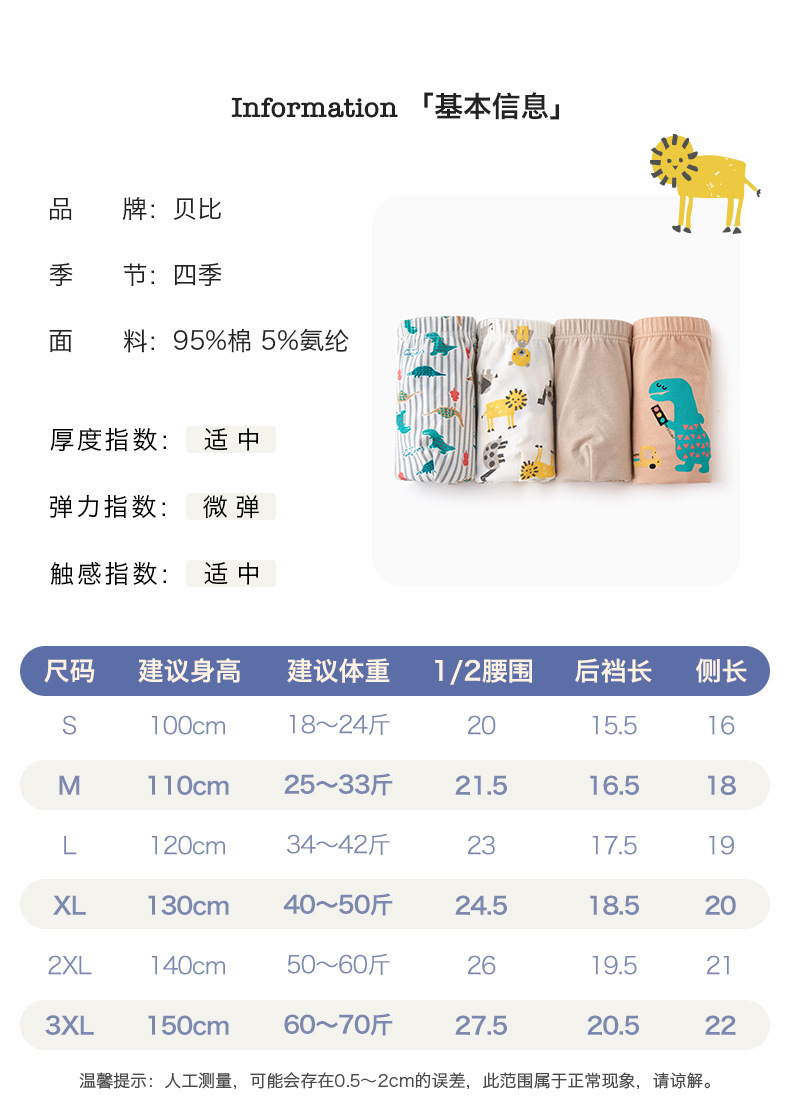 [특별 제공! 남아용 속옷] 남아용 사각팬티, 면, 남아용 사각팬티, 중대형 아동용 팬티 2켤레스토어 가기