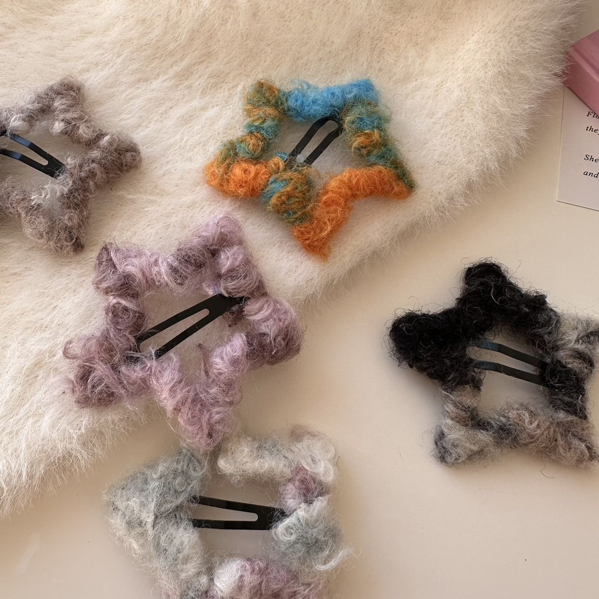 • 블랙 혼합 색상 플러시 스타 헤어 클립