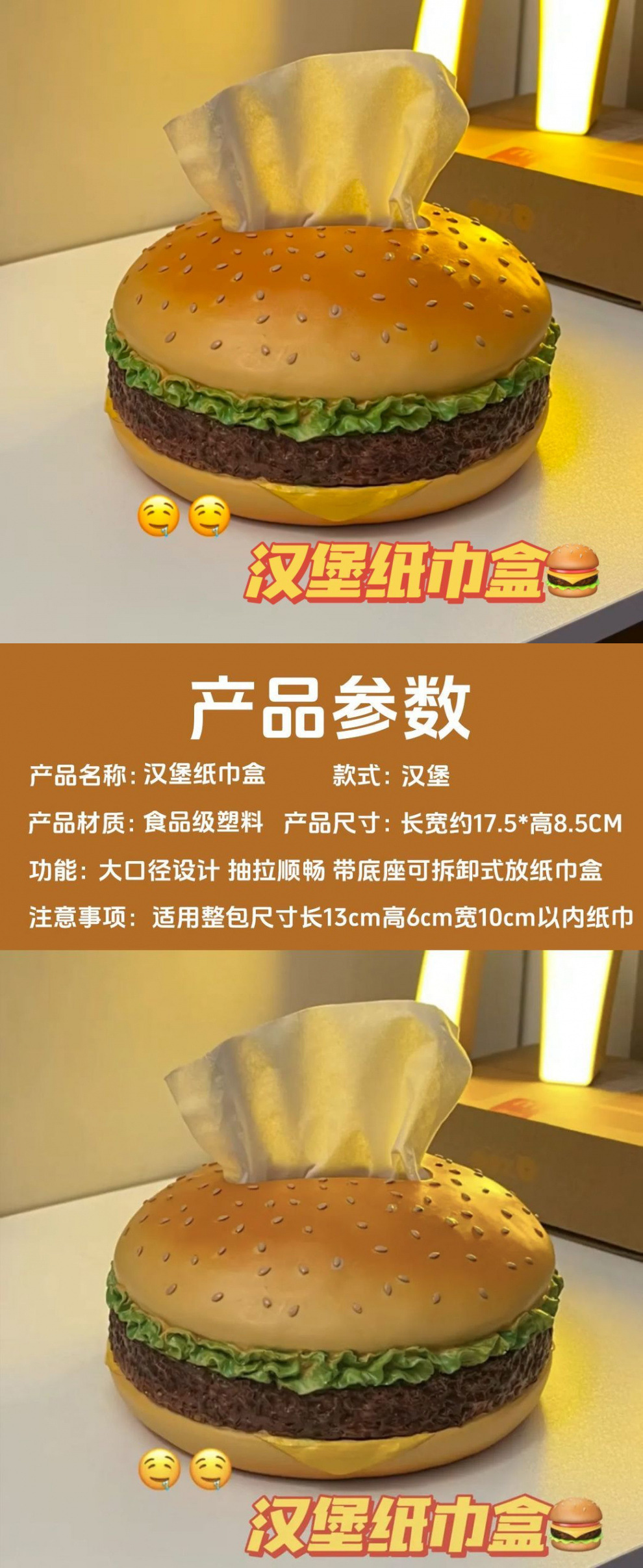 Xiaohongshu의 같은 스타일 버거 티슈 상자 크리 에이 티브 OK 복고풍 거실 티슈 상자 홈 재미있는 장식 장식품스토어 가기