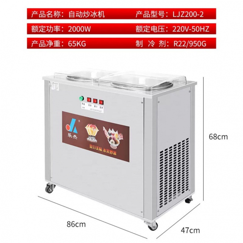 Lejie 아이스크림 기계 더블 팬 완전 자동 대용량 프라이드 아이스 크리스탈 상업용 거리 매점 프라이드 요구르트 기계 단일 팬