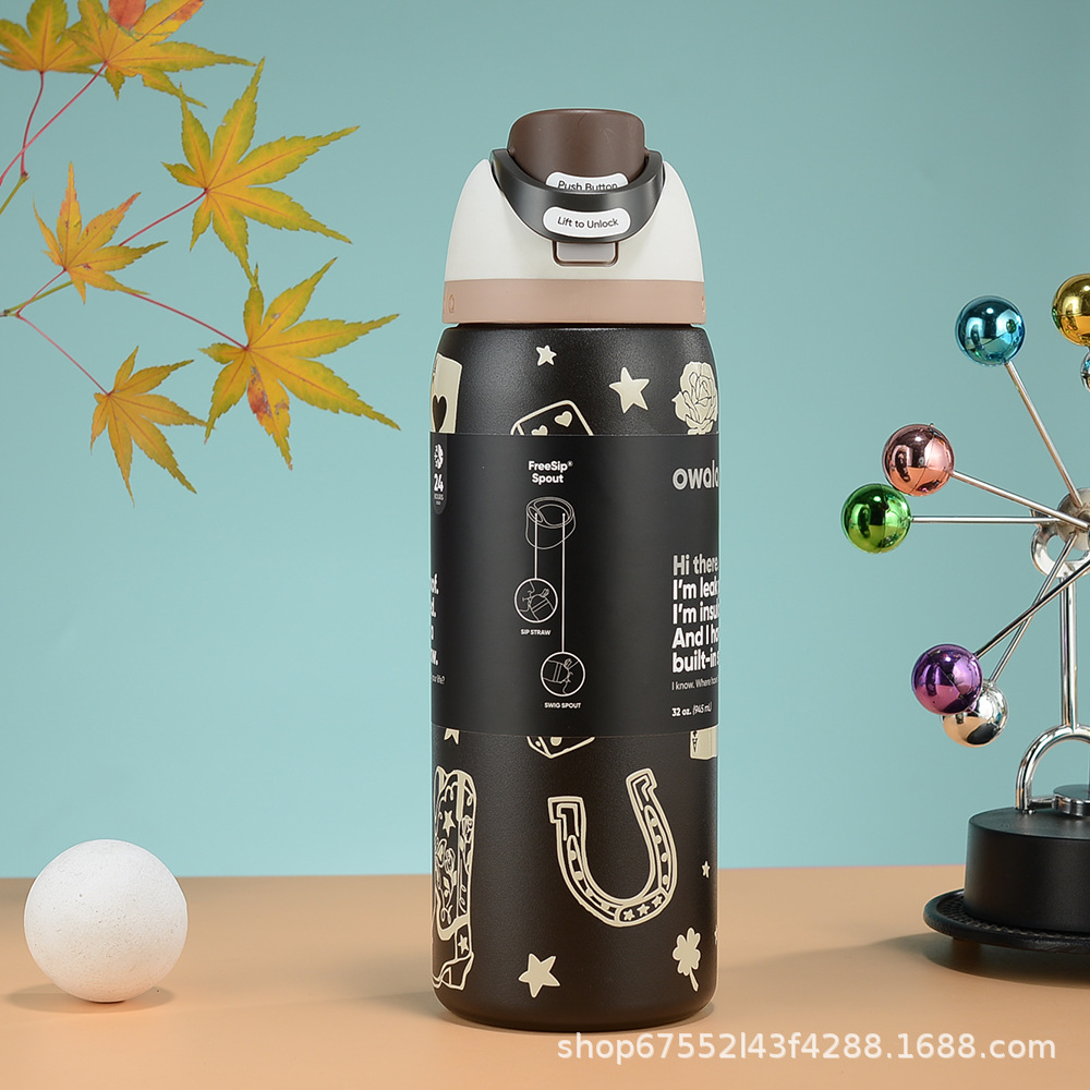 아마존 전용 owala 과일 컵, 멋스럽고 패셔너블한 32oz 보온병 컵, 야외 등산 휴대용 스포츠 주전자스토어 가기