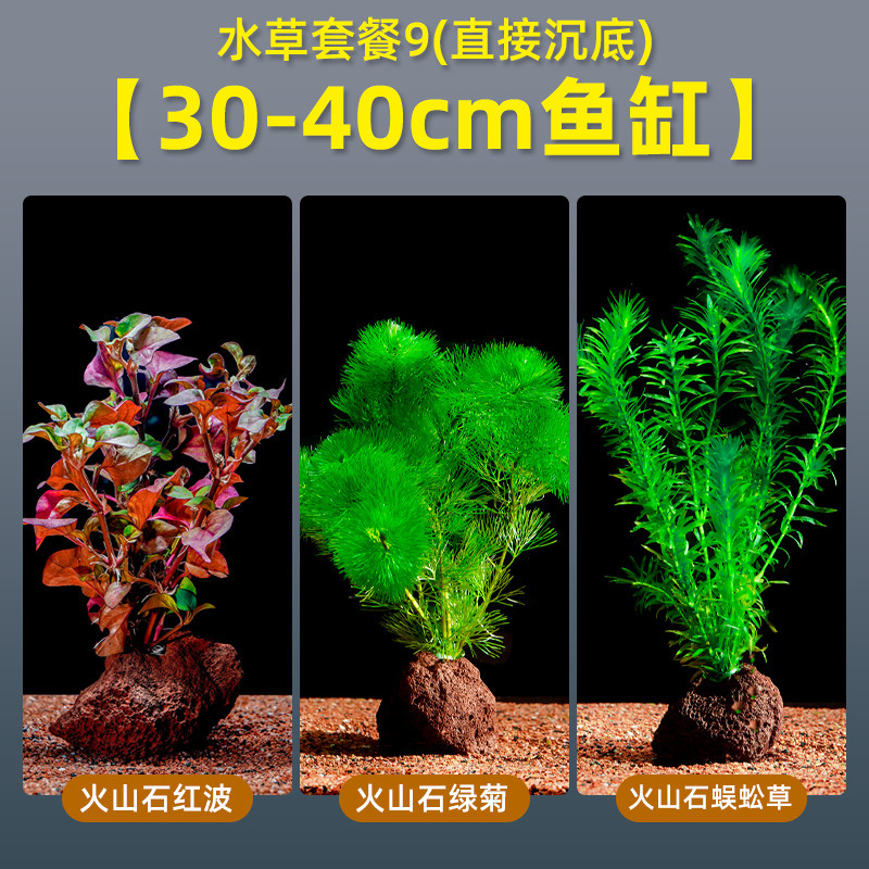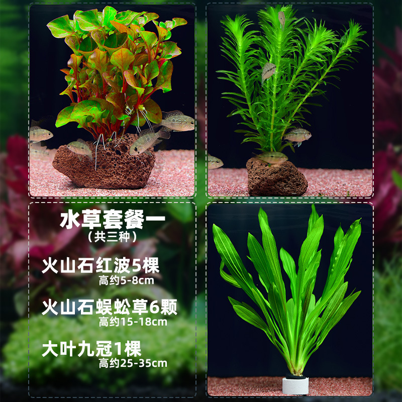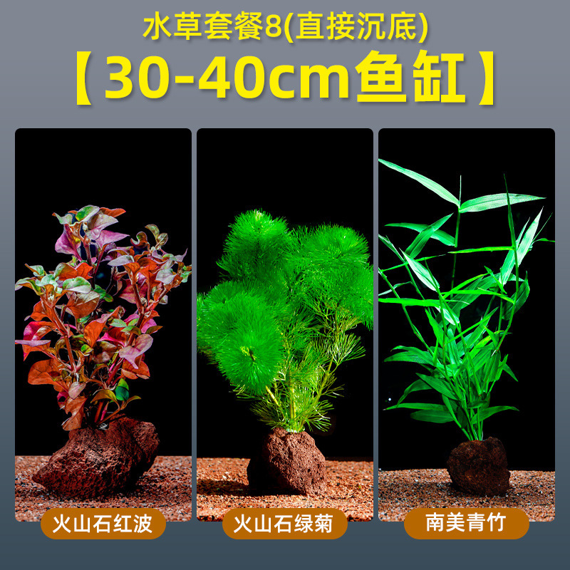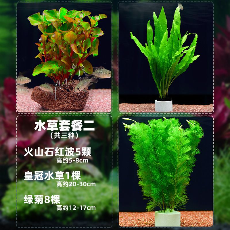 • 화산석 붉은 파도 + 녹색 국화 + 녹색 대나무 (30-40cm 수조에 적합)