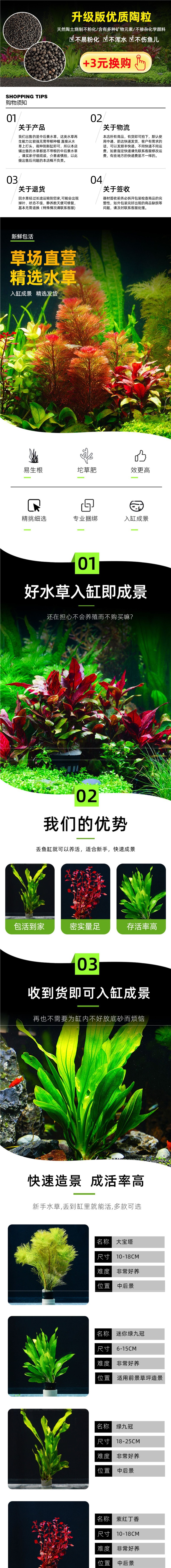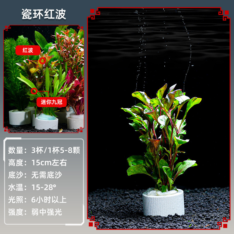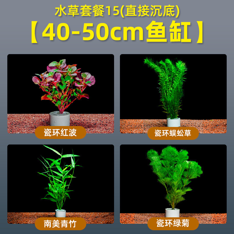 • 자기 링 붉은 파도 + 지네풀 + 녹색 대나무 + 녹색 국화 (40-50cm 수조에 적합)