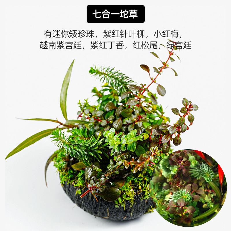 • 화산석 녹용이끼 + 붉은 파 잔디 + 녹색 국화 잔디 (30-40cm 수조에 적합)