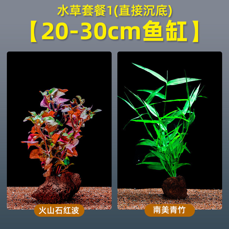 • 화산석 붉은 파도 + 남미 녹색 대나무 (20-30cm 수조에 적합)