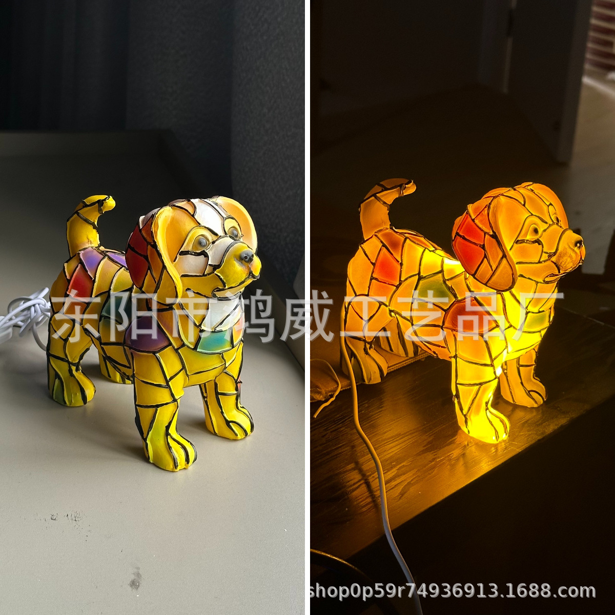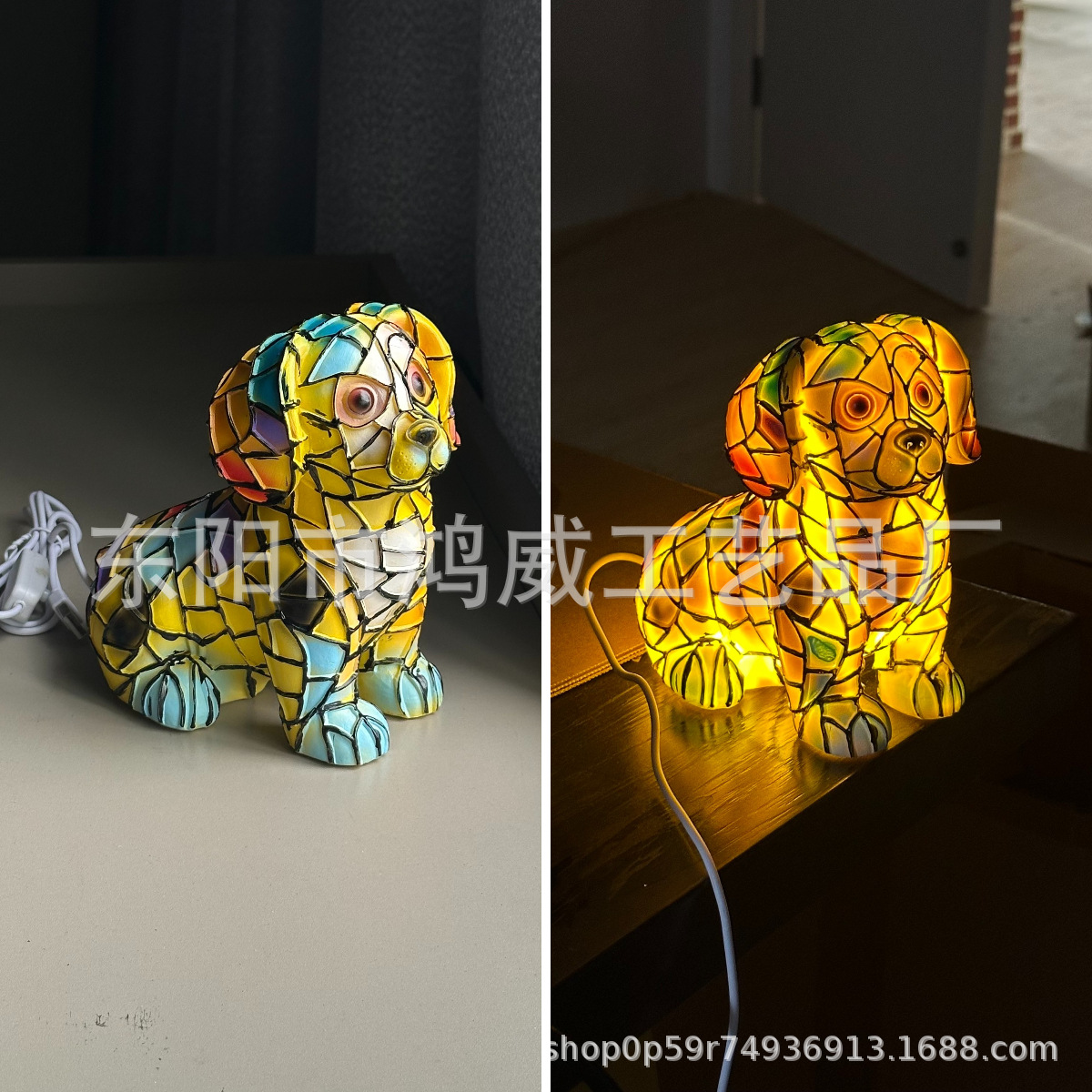 국경 간 새로운 개 장식품 수지 동상 공예품 홈 인테리어 USB 플러그 동물 LED 조명 장식품스토어 가기