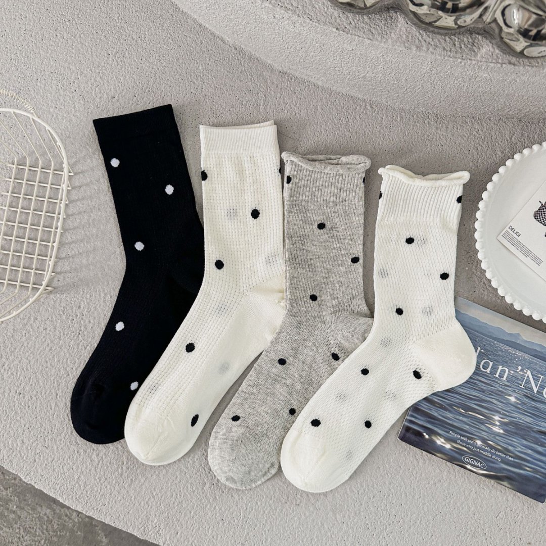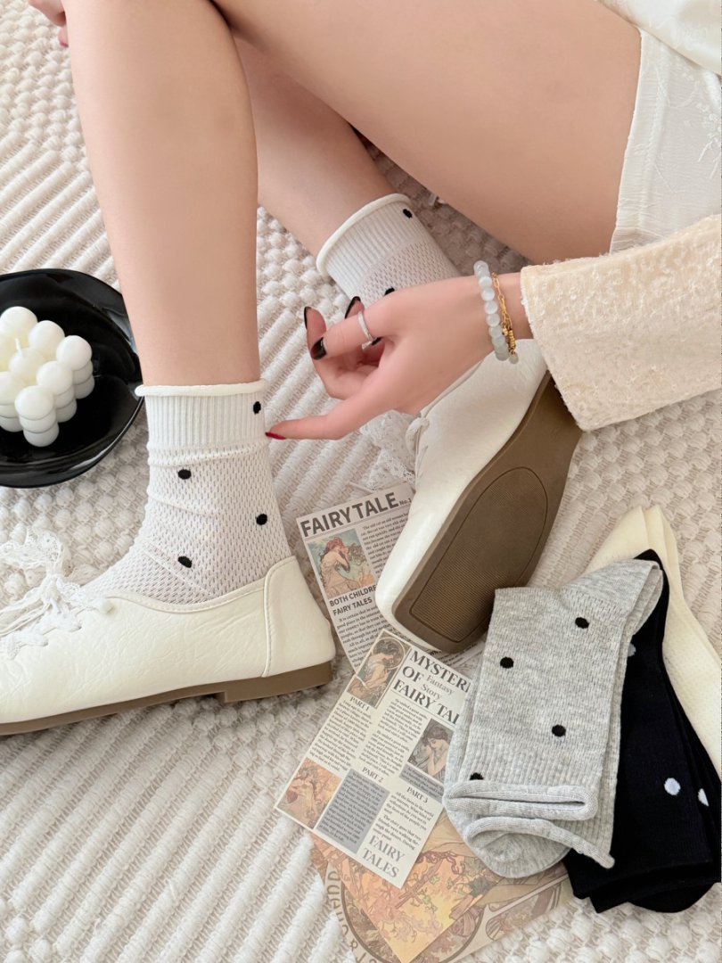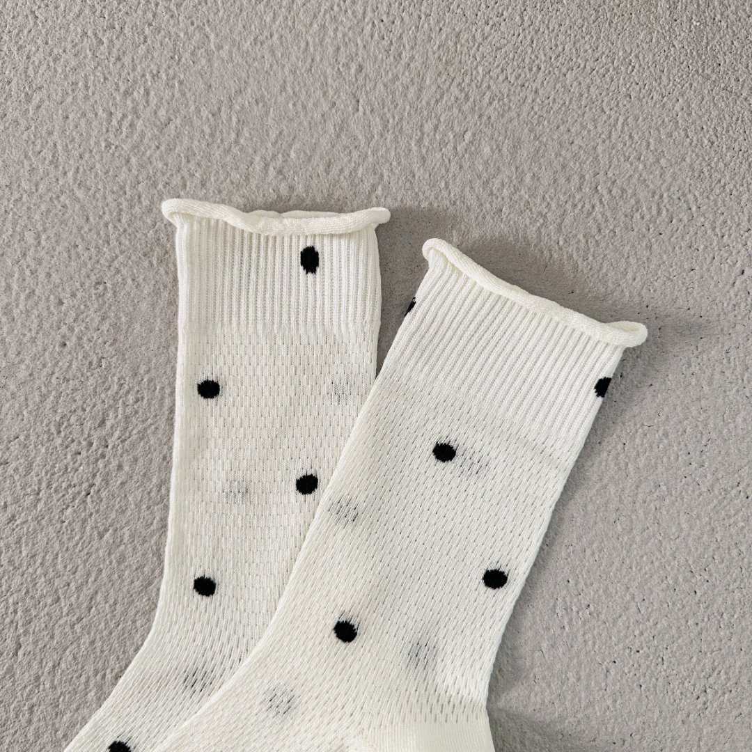 25가지 새로운 여름 얇은 여성용 양말, 폴카 도트 다용도 종아리 중간 양말, 캐주얼한 보풀 방지, 편안하고 통기성이 좋은 Zhijie 양말