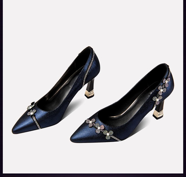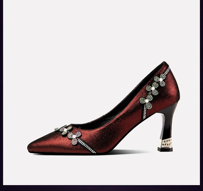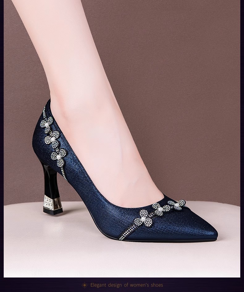 여성을 위한 우아한 하이힐, 스틸레토 힐, 뾰족한 발가락, 2025 봄 여름 여성의 새로운 패션 꽃 모조 다이아몬드 펌프스 여성 신발스토어 가기
