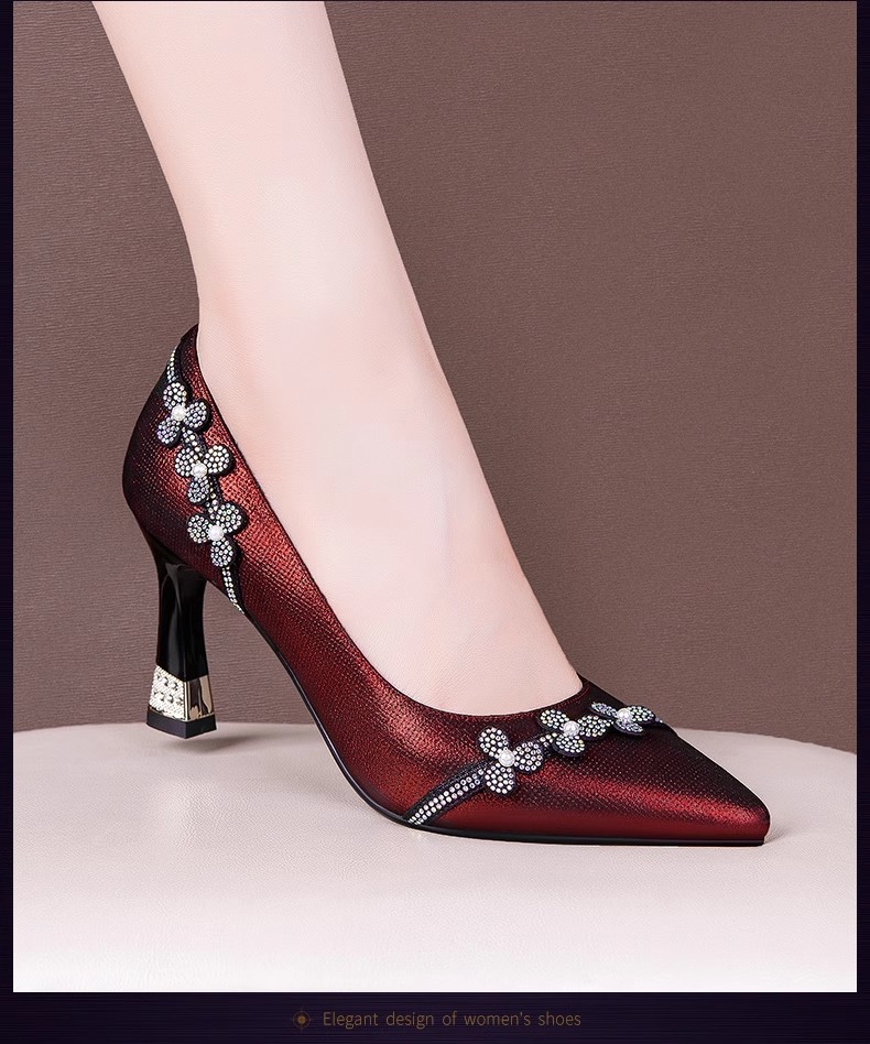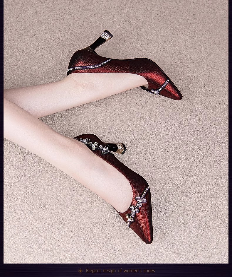 여성을 위한 우아한 하이힐, 스틸레토 힐, 뾰족한 발가락, 2025 봄 여름 여성의 새로운 패션 꽃 모조 다이아몬드 펌프스 여성 신발