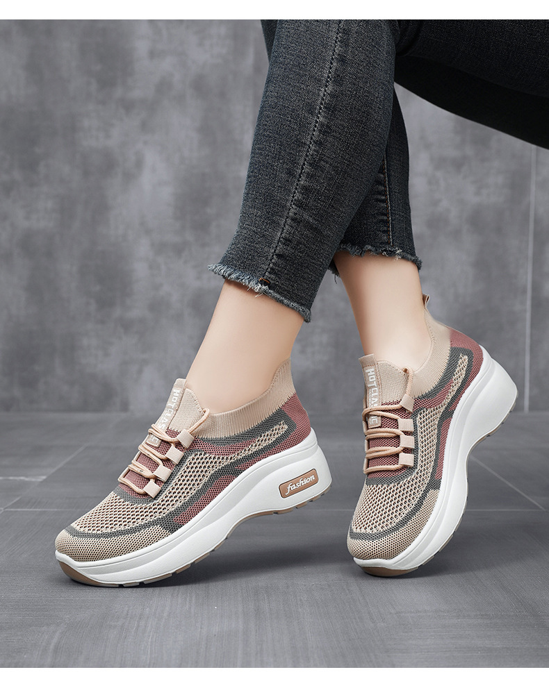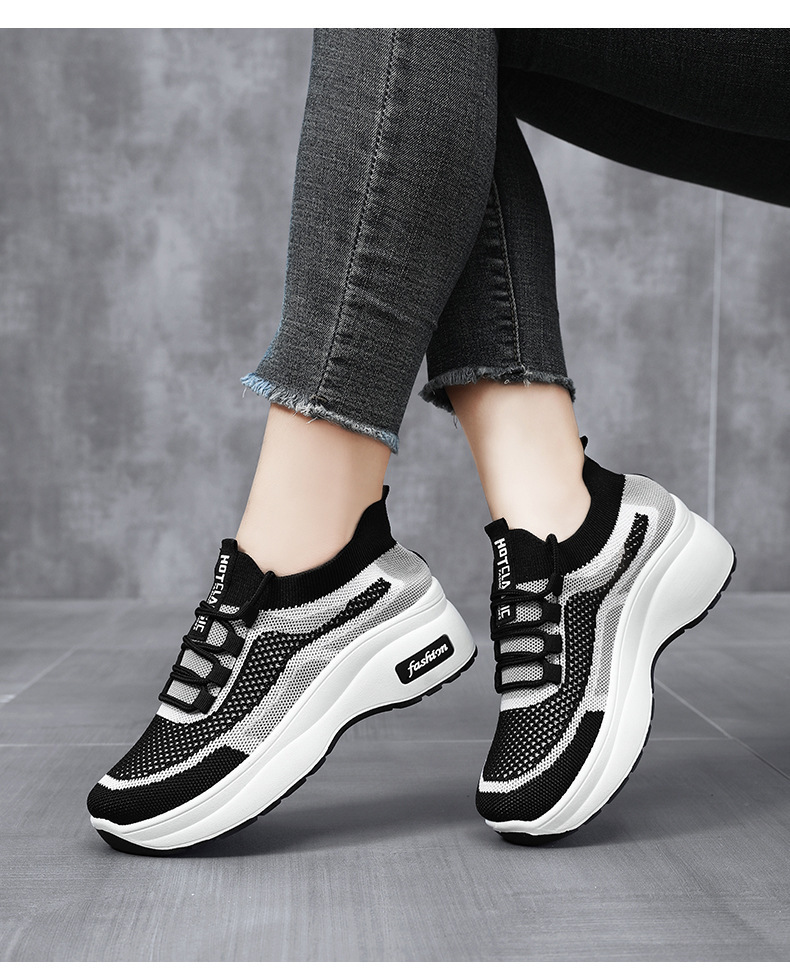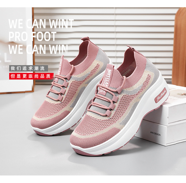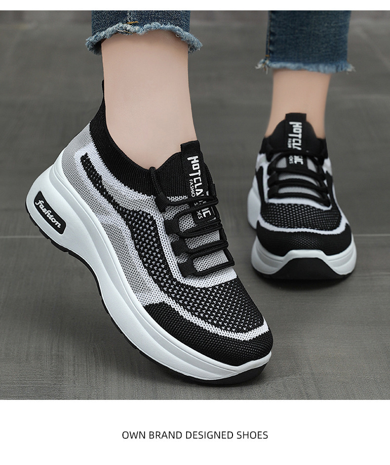여성 신발 플랫폼 클래식 캐주얼 신발 플랫폼 신발 편안한 통기성 사계절 날기 신발 올매치 양말 신발 여성 맞춤스토어 가기