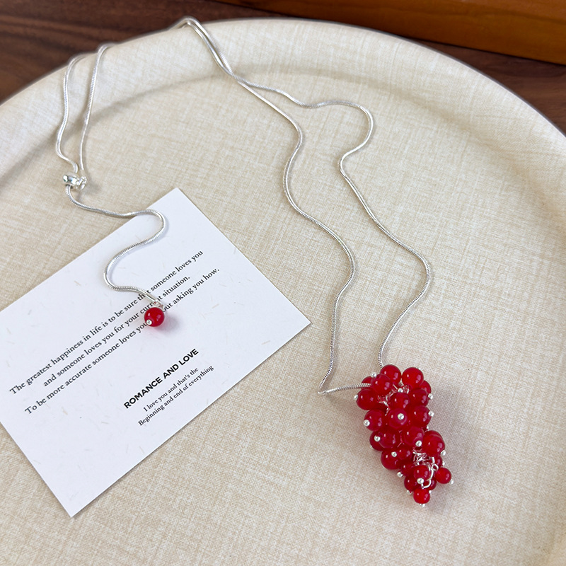 한국 블로거 도파민 포도 비즈 목걸이 여성 틈새 디자인 조절 긴 스웨터 체인 액세서리