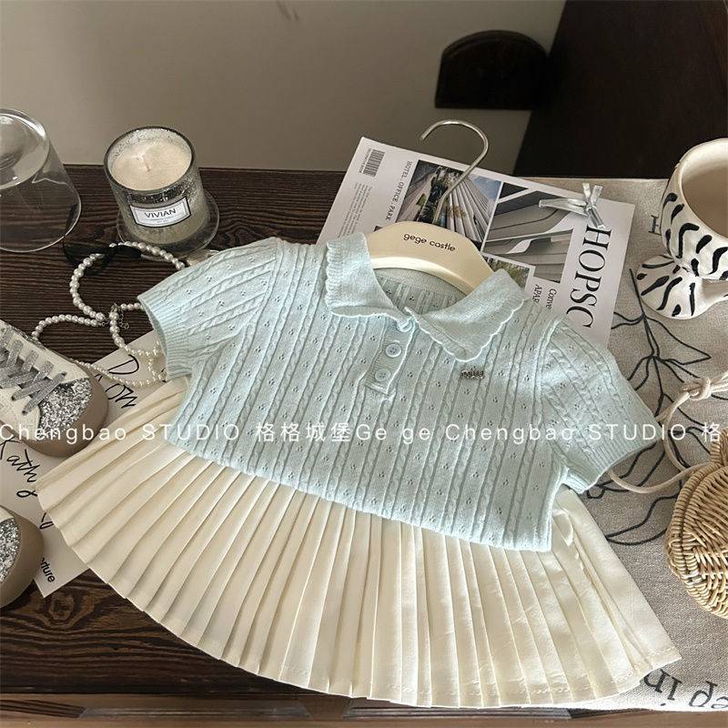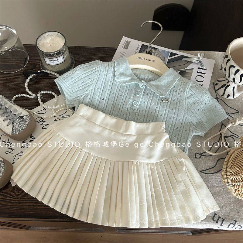 여자 대학 스타일 스커트 2025 여름 새로운 스타일 어린이 스타일 다목적 솔리드 컬러 주름 스커트 베이비 짧은 스커트 유행스토어 가기