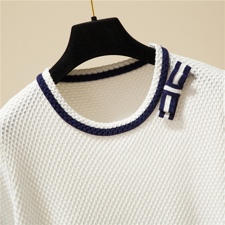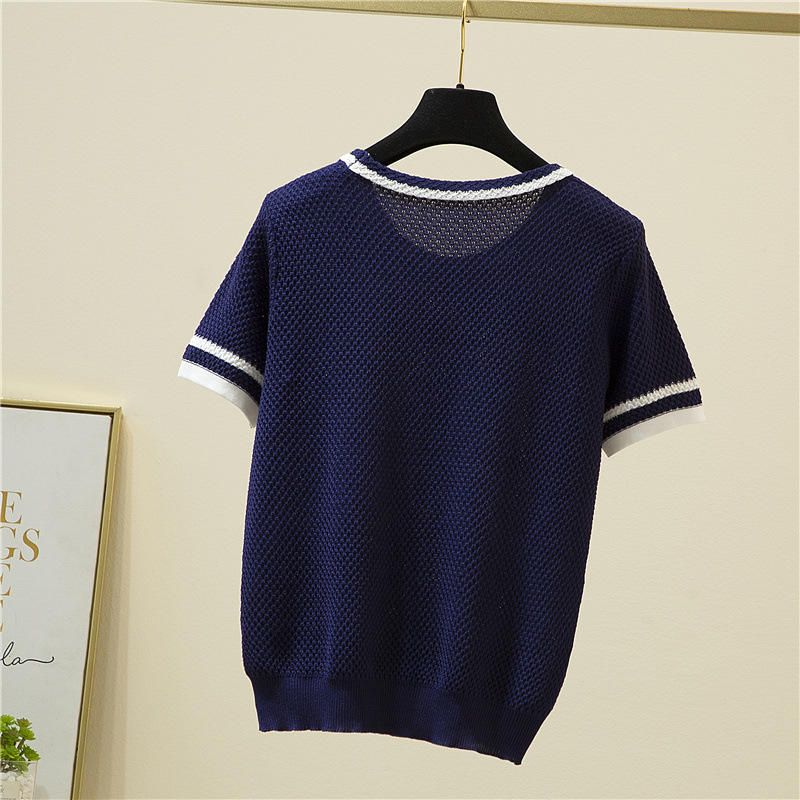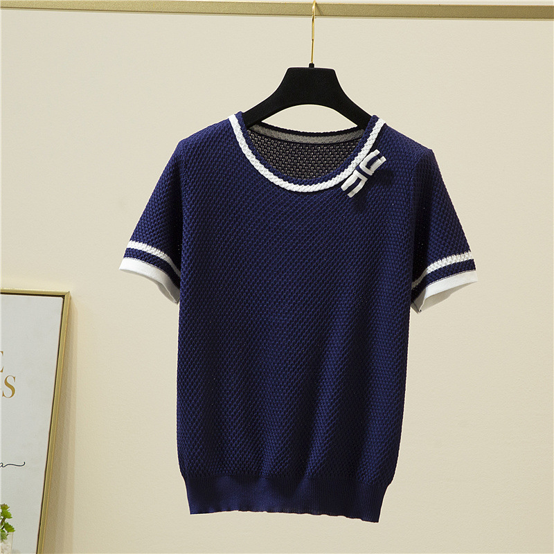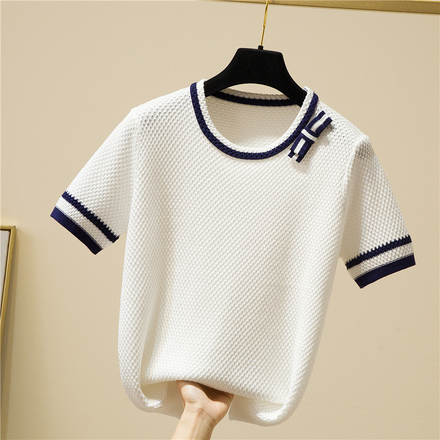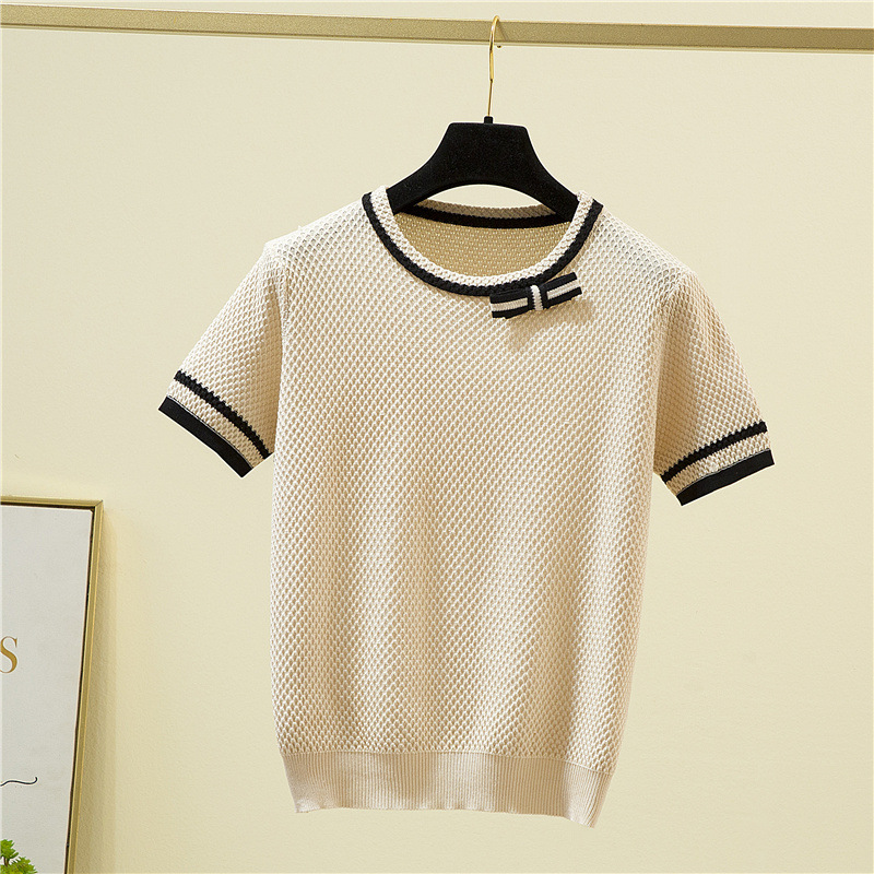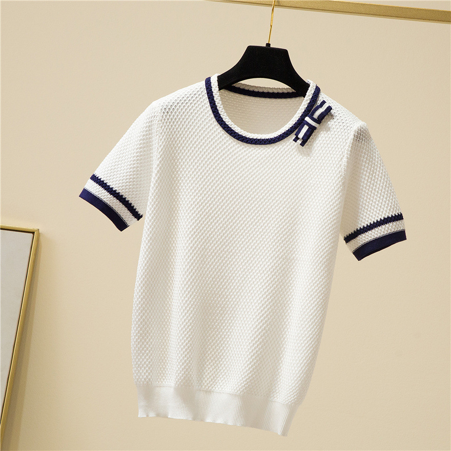 여성을위한 반팔 얼음 실크 스웨터 2025 여름 새로운 패션 한국 스타일 짧은 얇은 느슨한 풀오버 다목적 티셔츠스토어 가기