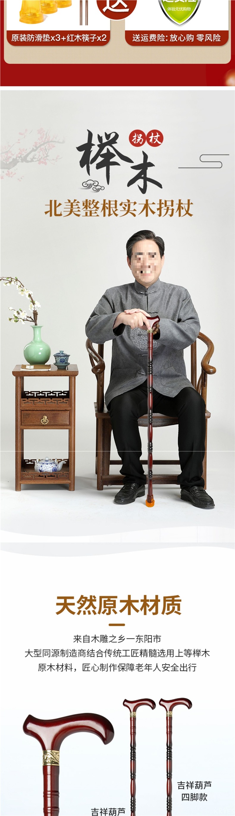 노인용 나무 지팡이, 4발 미끄럼 방지 나무 지팡이, 노인용 경량 지팡이, 수도꼭지 지팡이, 안락한 지팡이스토어 가기