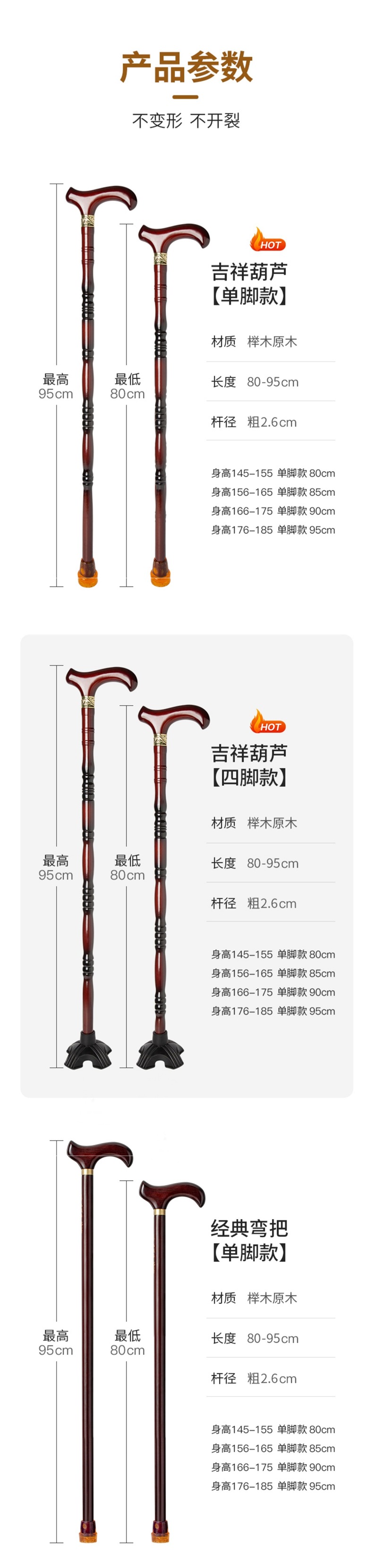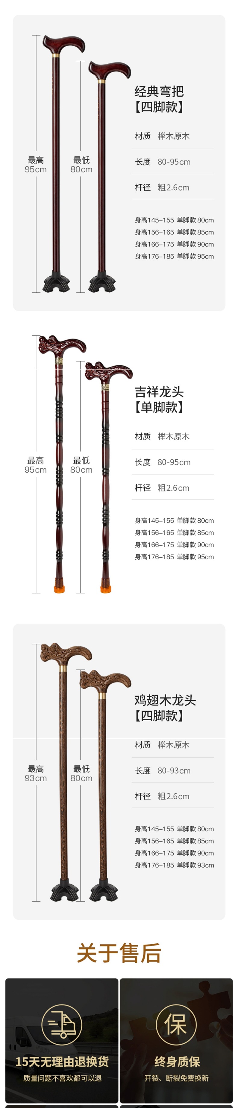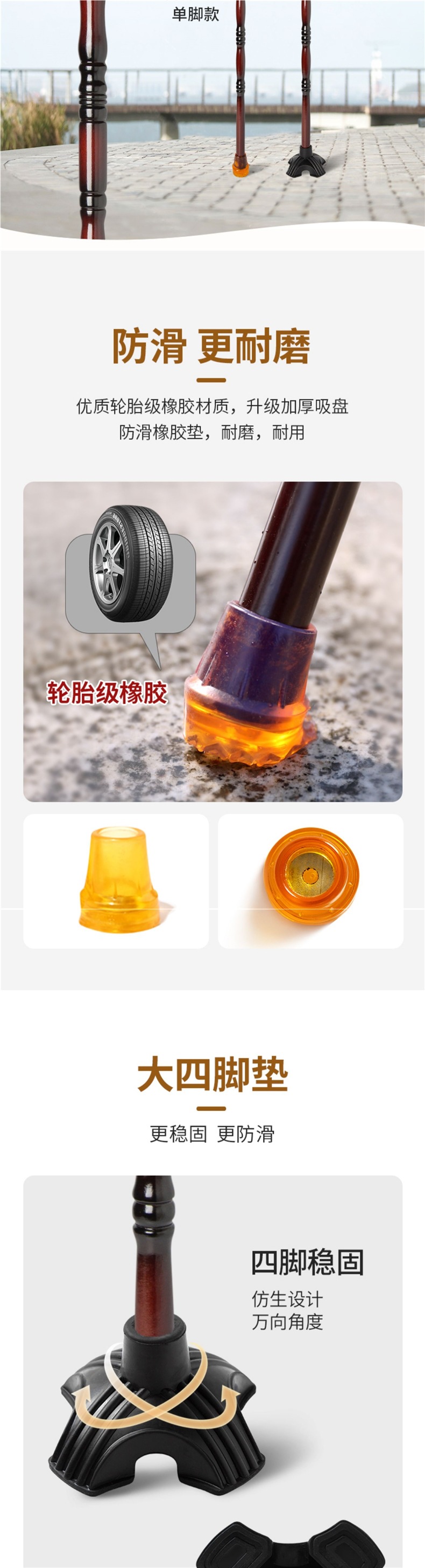 노인용 나무 지팡이, 4발 미끄럼 방지 나무 지팡이, 노인용 경량 지팡이, 수도꼭지 지팡이, 안락한 지팡이