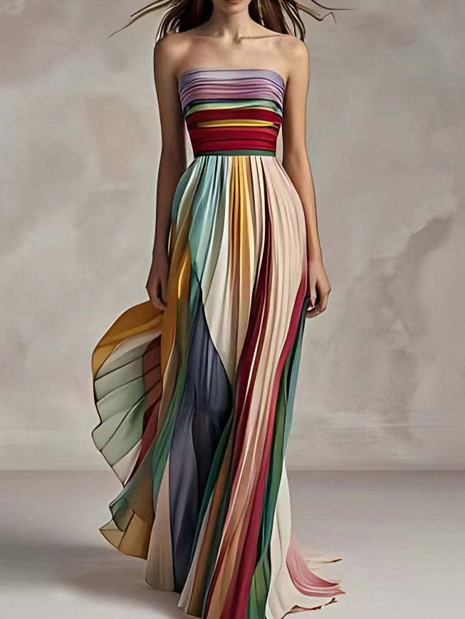 국경 2025 독립 역 아마존 새로운 유럽과 미국의 섹시한 튜브 길이 인쇄 된 색상 원피스 우아한 원피스