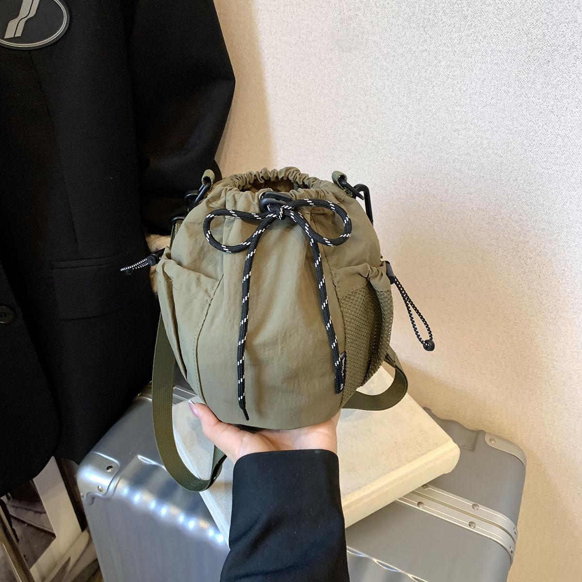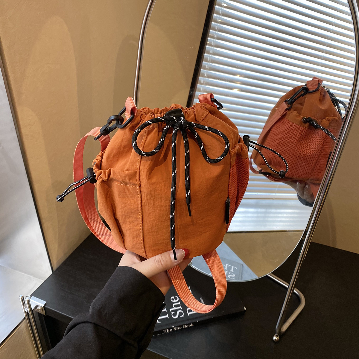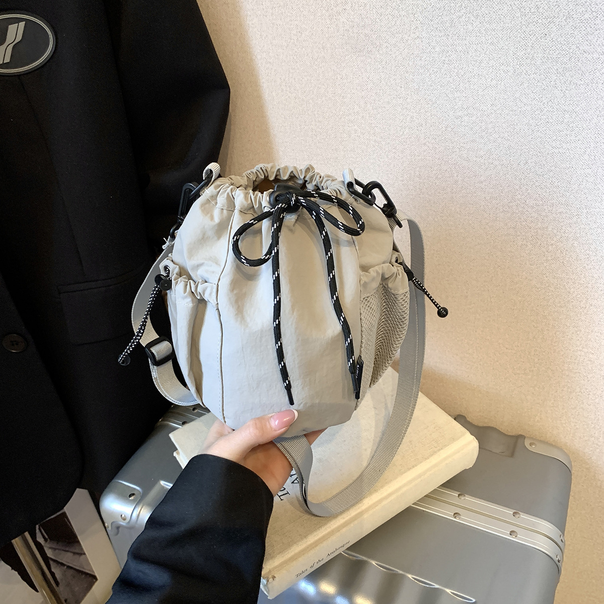 일본식 한국식 심플 솔리드 컬러 휴대폰 가방 숄더백 패션 한국식 드로스트링 버킷백 복주머니 가방 여성용 크로스백