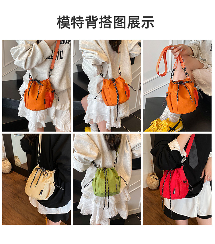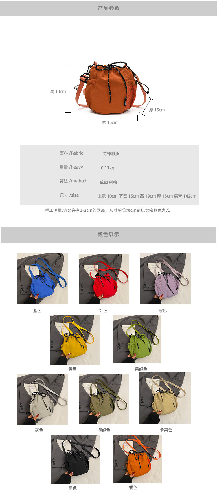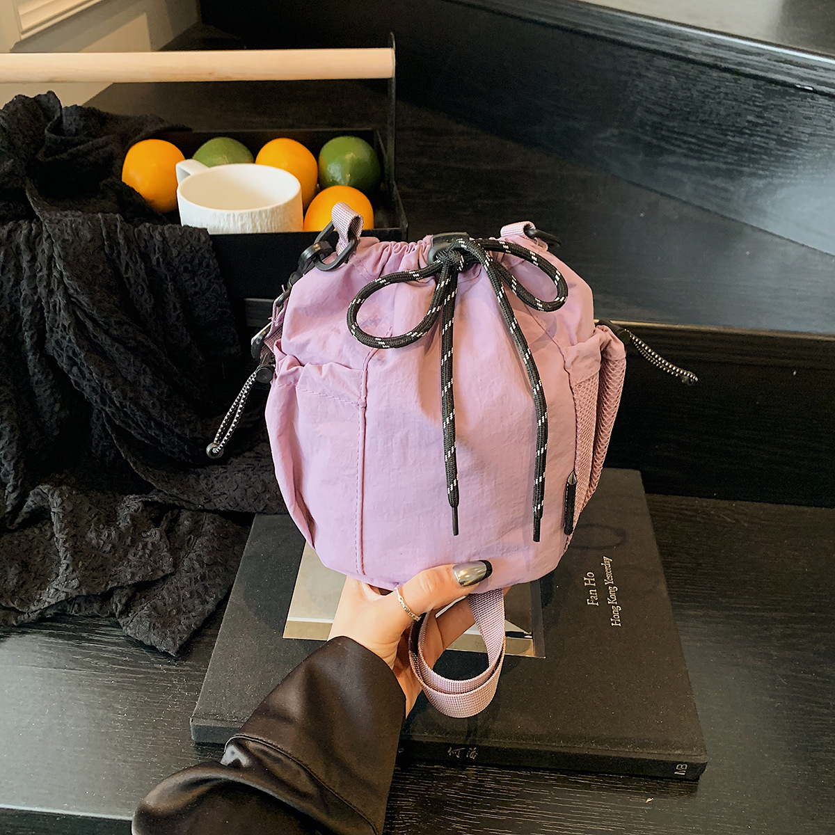일본식 한국식 심플 솔리드 컬러 휴대폰 가방 숄더백 패션 한국식 드로스트링 버킷백 복주머니 가방 여성용 크로스백