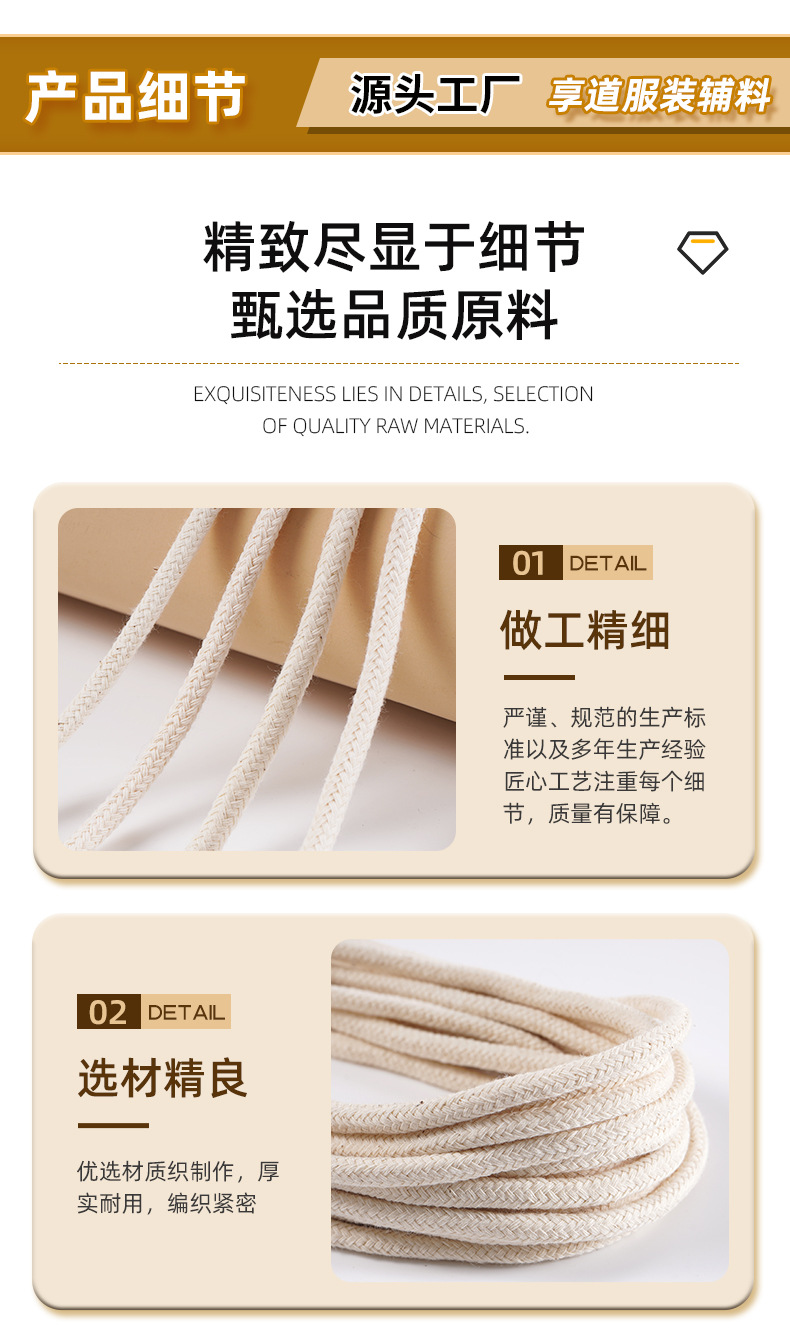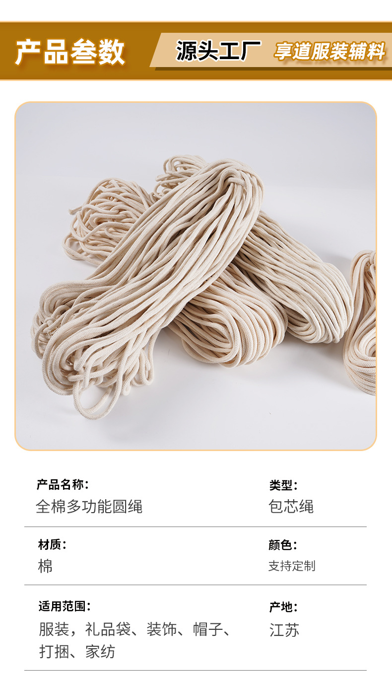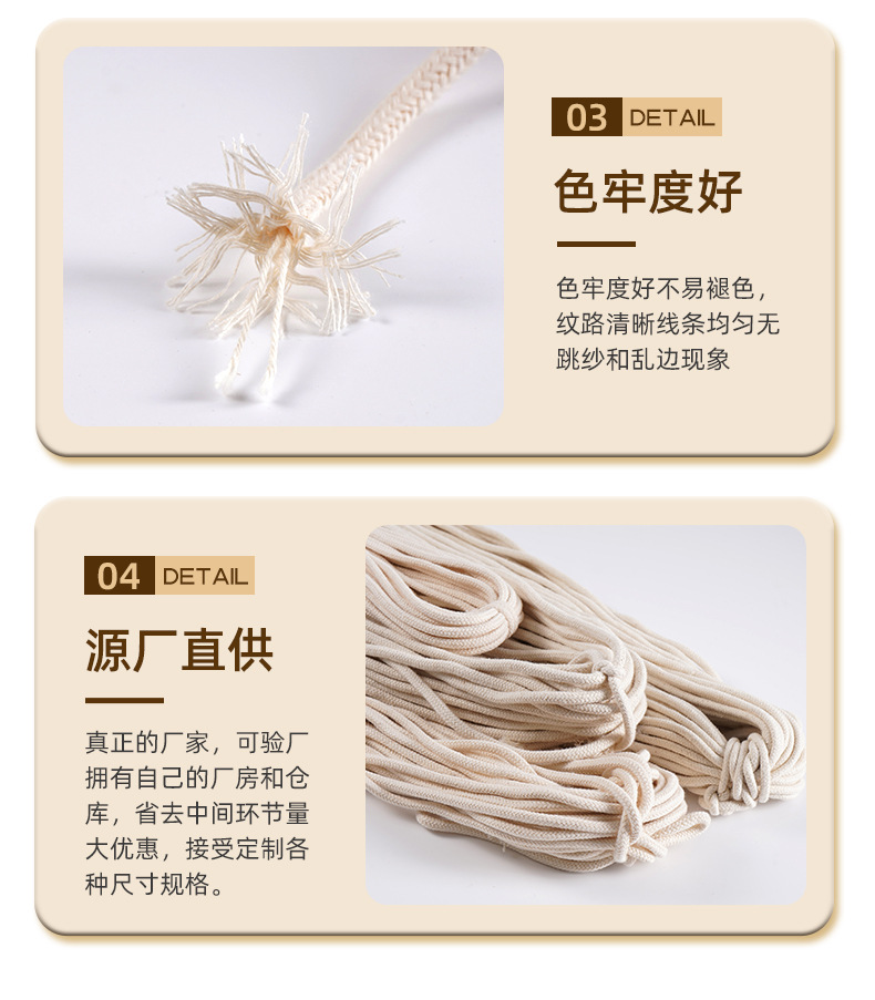 순면 다용도 원형 로프 제조업체 면 로프 코어가 있는 면실 로프 땋은 로프 신발 모자 의류 홈 텍스타일 원형 로프