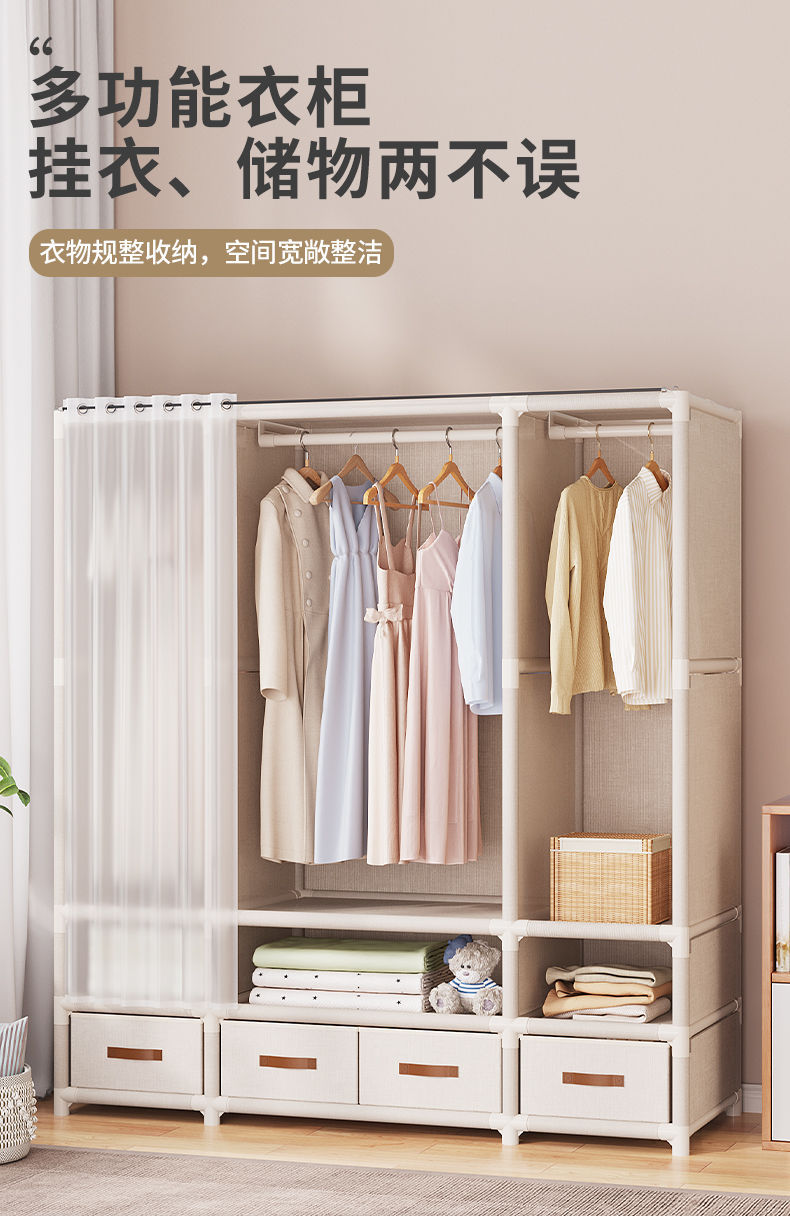 간단한 옷장 바닥에서 천장까지 임대 주택 보관 캐비닛 정리 캐비닛 다층 일본식 천 옷장 대용량 간단한 옷장스토어 가기
