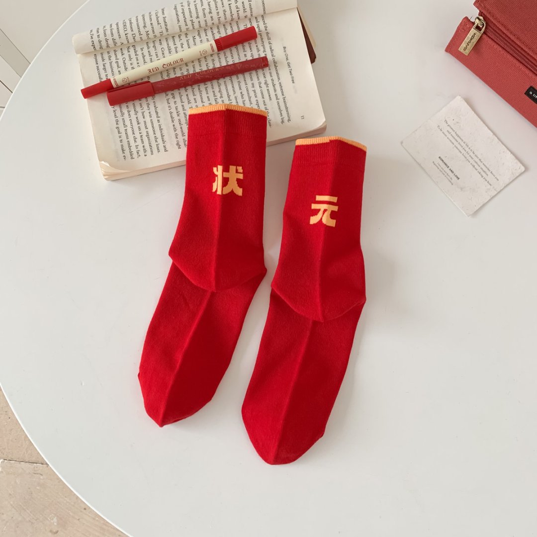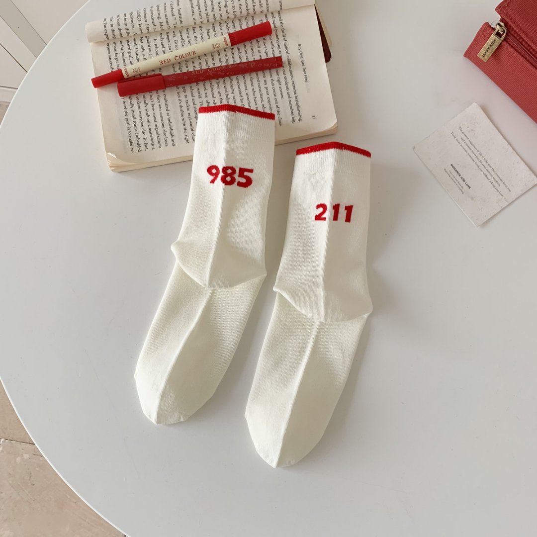대학 입시 시즌 양말 25년 여름 1위 얇은 남녀 공용 원피스 코튼 중간 길이의 고급 양말