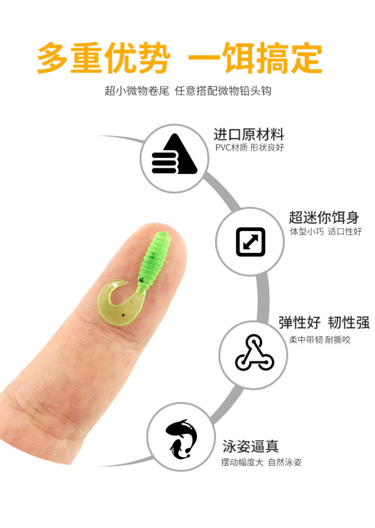 Dongding Microtail Worm 미니 초소형 루어 낚시 Pegasus Sunfish Green Slight Lure 소프트 미끼